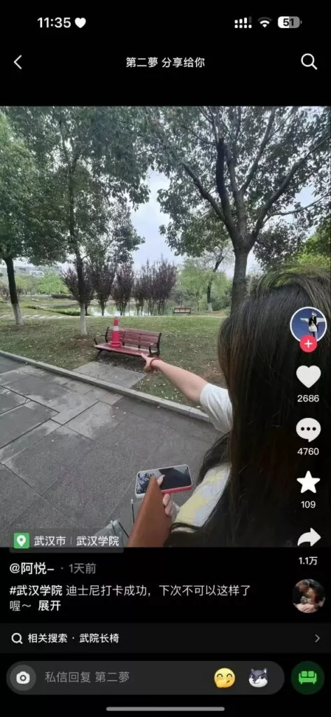 有些同学甚至效仿起了这对小情侣,他们也想去校园的这把长椅上打卡,仿佛这样就能与这对小情侣产生某种联系。他们的梗更是演变成了一种流行的趋势,打卡玩一下。每个人都在用自己的方式,去参与这场充满戏剧性的表演。