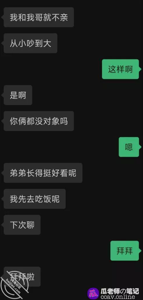 吃完饭几个家长坐在一起聊天,我在一旁看着我姐我姐一直冲我挤眉弄眼,看得我好笑又心疼,那个男孩子感觉一点都不礼貌,坐在那里不说话在那里玩手机,我不知道我妈咋想的,听说是我姨介绍的,后直我姐跟我说这姨可以拉黑了,主要是后头我妈也说这个男生不怎么样,这已经不是我们年轻人的想法了还好我妈也看不上他。后面呆的实在无聊,我姐当着大家的面说和我出去买点吃的,我妈看了看我姐打着圆场说我们年纪这么大了,嘴巴还这么馋..就让我们去了,可以理解妈妈的尴尬。