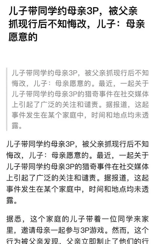 近期,一段网上热传的视频引发网友热议。视频中一男子发现妻儿与儿同学在自家床上行为不谨,让人极为愤怒。视频显示,男子意外发现妻子果露,儿子与其同学半果。他们的行为违背道德底线,令人难以接受。