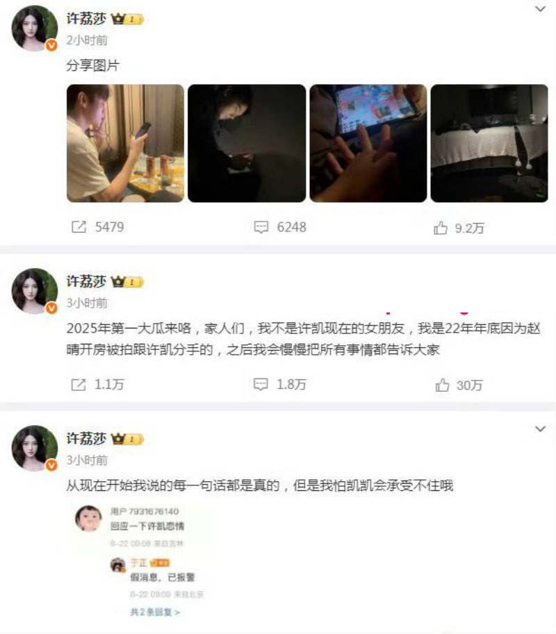 娱乐圈再起波澰!当红男演员许凯近日成为舆论焦点:网络上流传一段疑似他与同公司女星赵晴在酒店的亲密视频,前女友许莉莎也声称曝光了更多关于许凯的不当行为细节。