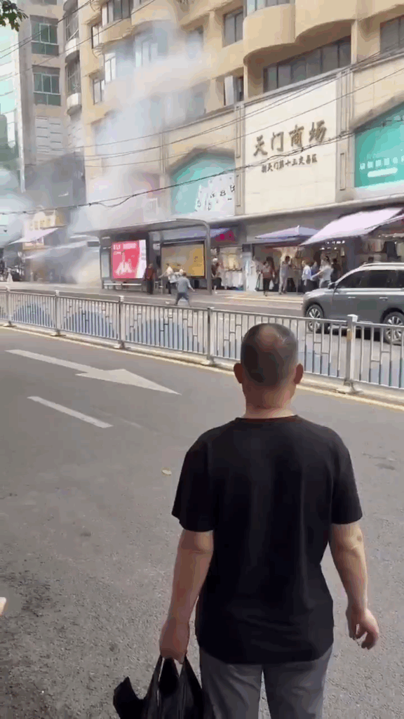 四川重庆朝天门街头突发事件!不明男子朝店铺投掷燃烧物