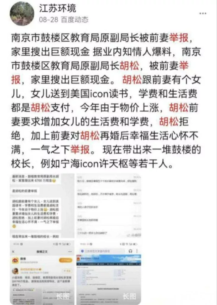 教育界近期爆出了严重的丑闻。早在8月13日,南京教育局局长胡松便被指控利用职权进行不正当关系,影响遍及全市。他不仅与多位下属的女校长保持不正当关系,还涉及了数百名优秀女教师,以及数十名正在成长的年轻女学生。这一事件引发了社会各界的广泛关注与愤慨,亟需对此进行认真调查。