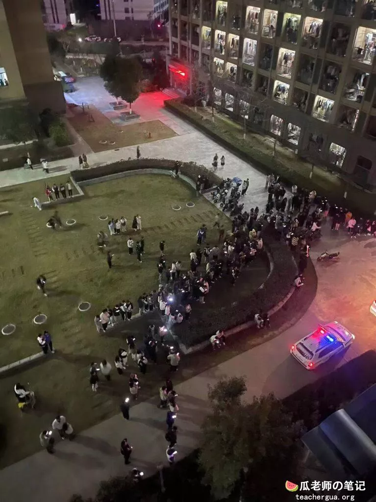 被发现后,警察封锁校区,在可疑位置搜寻胎儿。