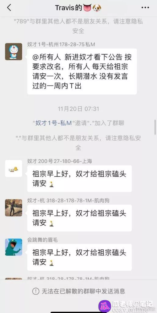 这些是李马特的奴才群的聊天记录,恶心的不得了,每天都是一堆男同给祖宗请安,我的天呐,男同都这么可怕的么,拉群列表,这至少有3-人,有的排号都到了300了,每个人还要标注自己的地址和年龄身材体重,李马特是真的把自己当皇上了
