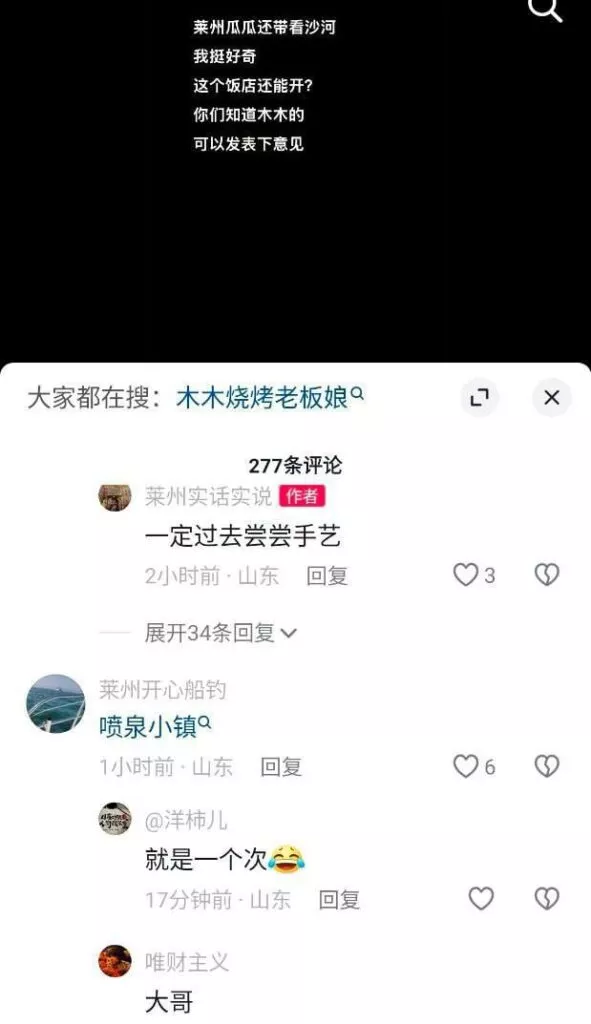 这是什么新颖的招揽顾客方式吗?在山东烟台的莱州,有一家叫王木木的烧烤店。店内有一位既有气质又颇具颜值的老板娘,吸引了络绎不绝的食客们,其中一个原因便是老板娘的美貌。最近,她却因与一位神秘人士在烧烤店后厨进行一对一的私密聊天而陷入绯闻漩涡。