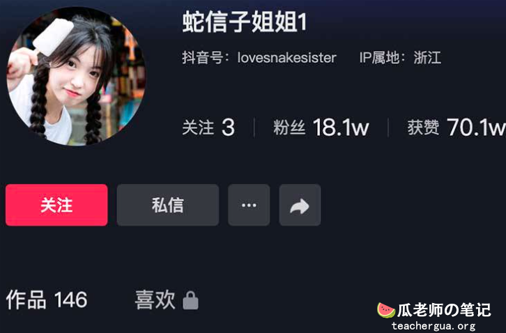蛇信子姐姐,在抖音现在有十八万粉丝,而且还有很多小号,蛇信子姐姐毕业于浙江水利水电学院,浙江人,喜欢摄影,常驻杭州、上海。