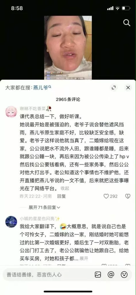 这可能是今年迄今为止最毁人三观的一件事,河南信阳的固始县,一位昵称燕儿爷的抖音用户发布视频,宣称自己结婚后因为丈夫长期不在家,与公公发生了不正当关系,一时间惊爆网络,这种事实在是太过于毁三观。