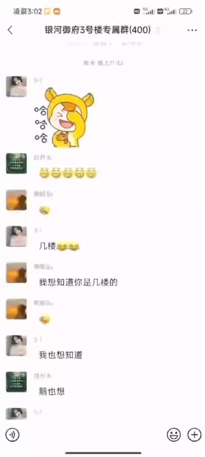 河北武汉银河御府三号楼,本是一个安静的晚上,没成想这三号楼的一对情侣在家中doi声音实在太大,导致周围邻居无法入睡,最后被三号楼业主群疯狂怒怼输出,就是这么个事。