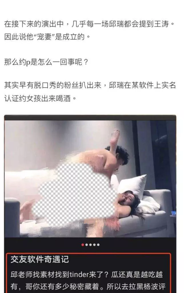 知名脱口秀演员邱瑞,因其宠爱妻子的形象而备受喜爱,然而近日却曝出他频繁通过实名约炮的消息。虽然邱瑞在公众面前一贯展现对妻子的呵护,但私下里却显得爱玩和喜欢暧昧的倾向。他不仅在网络上与他人进行露骨的聊天,还在现实中进行约会。更令人震惊的是,他的女友王涛似乎成为了他名声大噪之后的“工具人”。