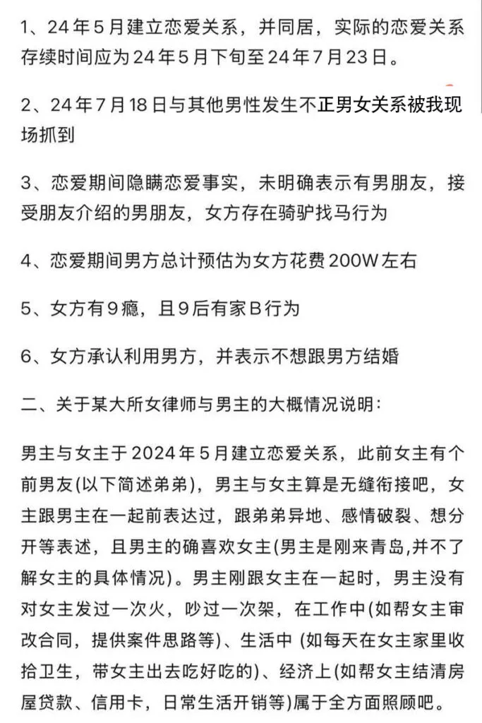 中征律师事务所的戴玲因感情问题引发关注。她在与男友的关系中榨取了200万元,奢侈消费豪车和名牌包,但始终不打算结婚。此外,戴玲私下嗜酒成性,酒后常对男友实施家庭暴力,致使其身上满是淤青和抓痕。
