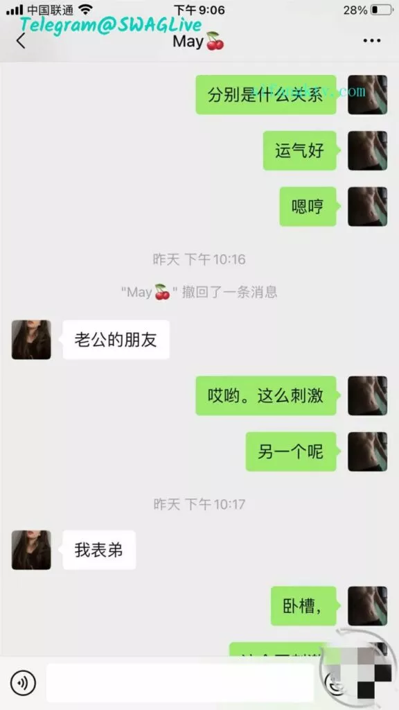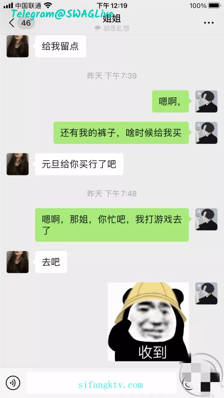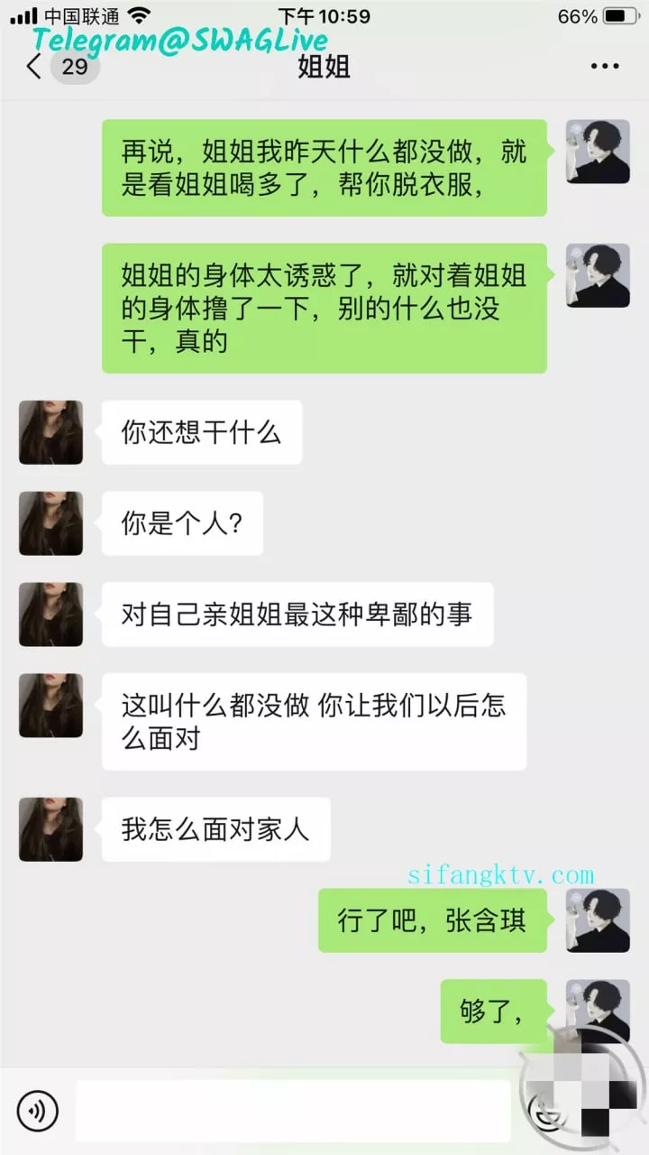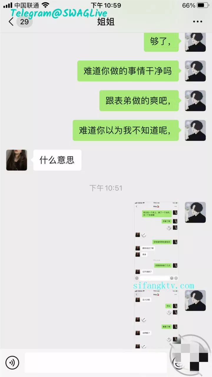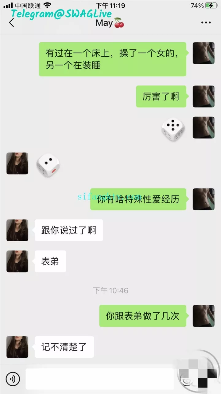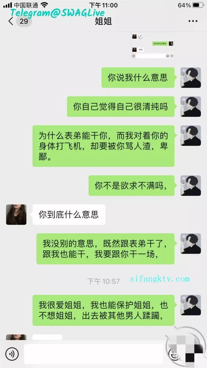今天继续用小号撩姐姐,有了一大步进展,看到了,姐姐的匈和B毛,感觉太上头了,对着姐姐的匈撸了一发,太爽了,感觉整个人都飘了,随着和姐姐的聊天进展感觉Cao到姐姐的希望越来越大!话不多说,上图