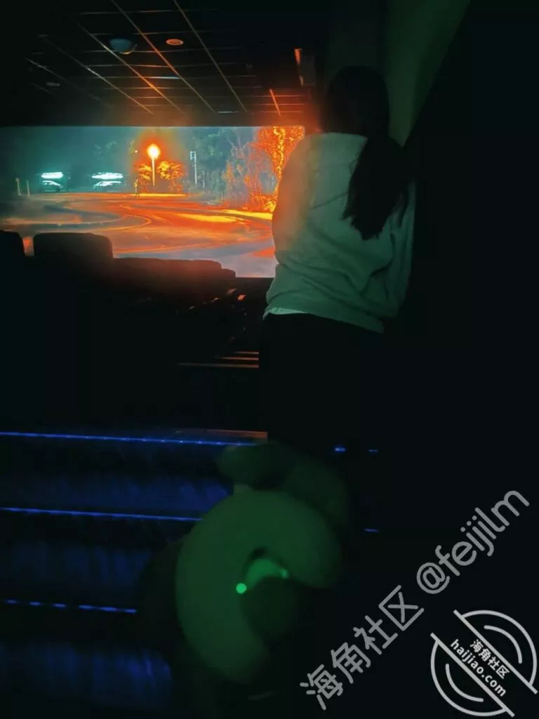 手一直不敢动,就这样放着,但是心里还是小鹿乱撞,不一会就硬了,我凑到她耳朵边告诉她我起反应了,她也没回头,也没回我,就一直看电影,我就拿着手机趁机偷拍了两张照片,也不敢多拍,怕她问我,或者想到之前也拿手机拍