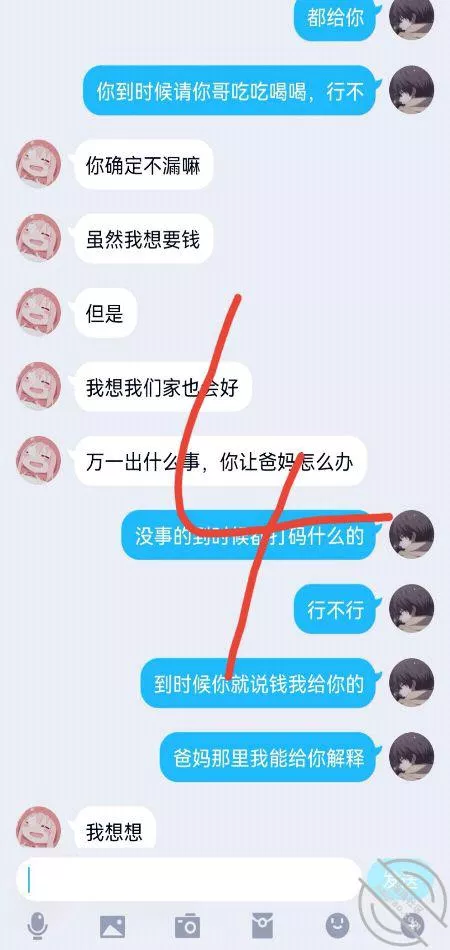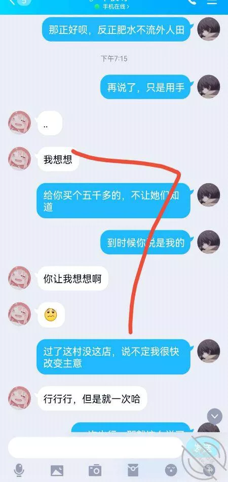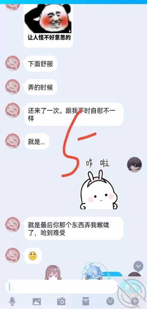 就怕细长,都能爽不就行了,回来以后又跟妹妹聊了聊。也没看明白她的态度,也不知道有没有机会了,实在不行还是拿钱吧,毕竟除了这个,别的也不知道怎么能把她搞到手。聊天记录奉上
