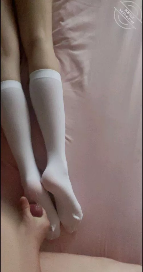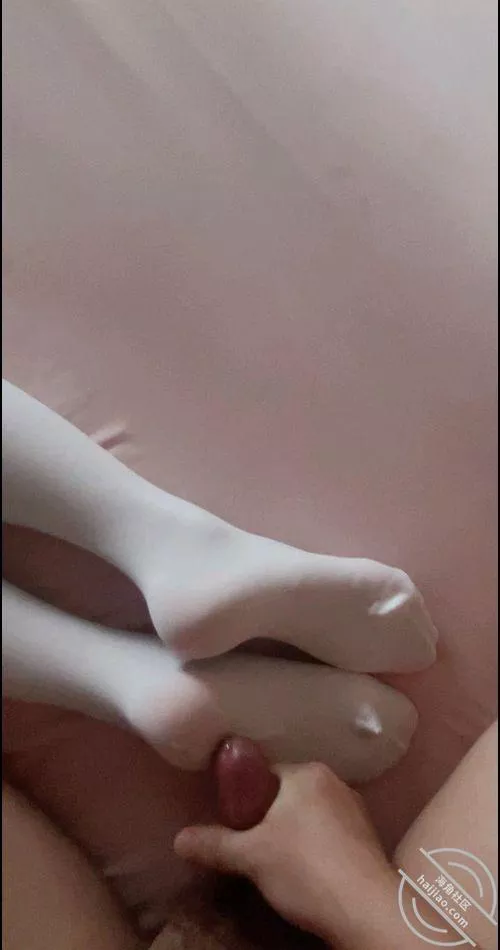 就算是这样也很激动啊,虽然她不让Cao她,但是能射脚上也值了,依旧跟她商量好同意我拍,怀着激动的心情射在了她的白色丝袜上面。