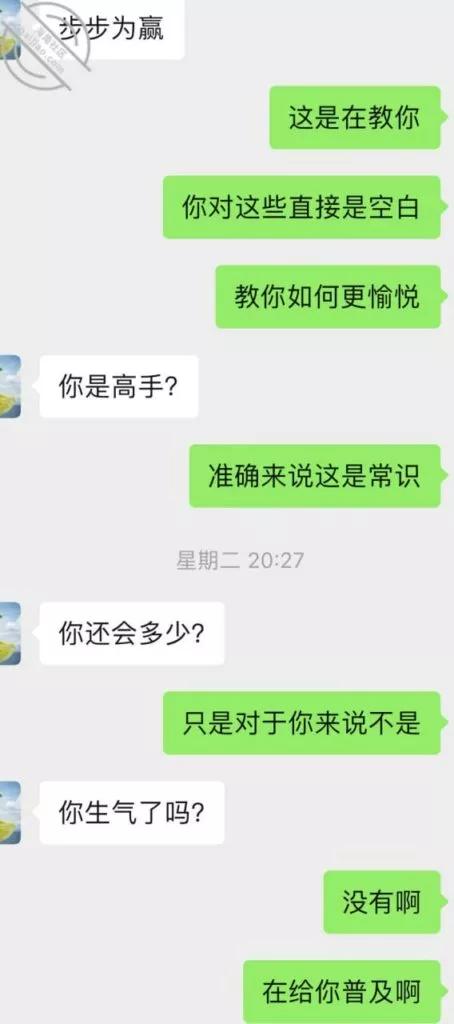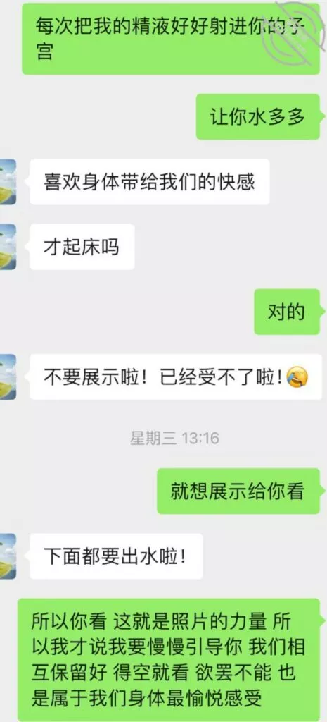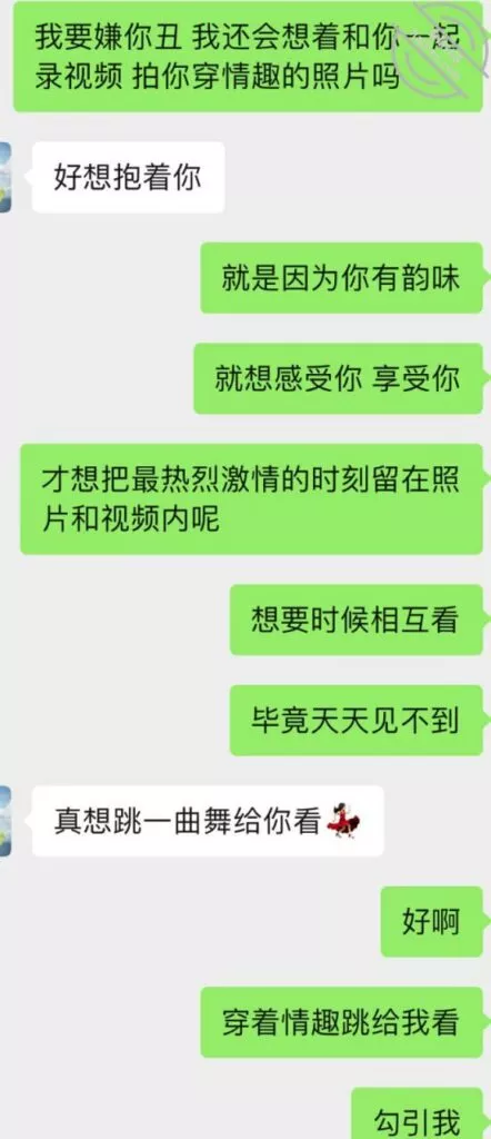 不过第三次虽然也没成功拍到照片和视频但是她开始松口至少穿情趣了而且在我引导下还主动给我发照片看,按后来她说 穿上情趣看自己照片 自己下面都受不了并且说第一次干涩 第二次有点水,那么第三次直接是润滑到极限,被我撩搔的不行不行,想到下面现在就会湿润。