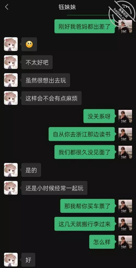 能不能搞到妹妹不知道,起码来给我能做伴,家里就我自己,空荡荡的也挺无聊的,自从妹妹答应我来之后,我更是沉迷与海角,幻想着跟妹妹有某种关系,那就更好了,得不到也没关系。我打心底里挺喜欢她的。