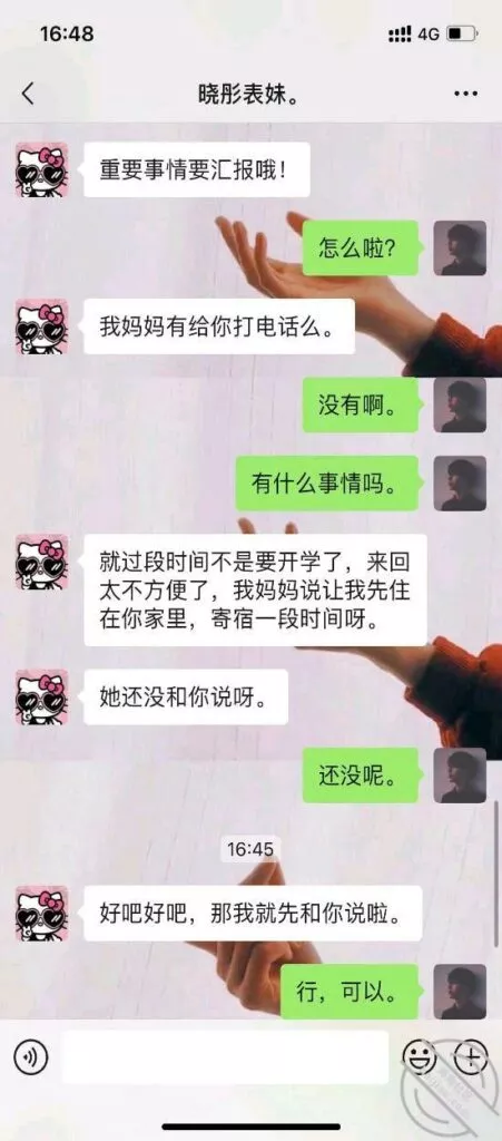 就是从那件事以后,表妹其实就特别信任我。要不然也不会和她妈妈商量自己一个人来我家里住了。