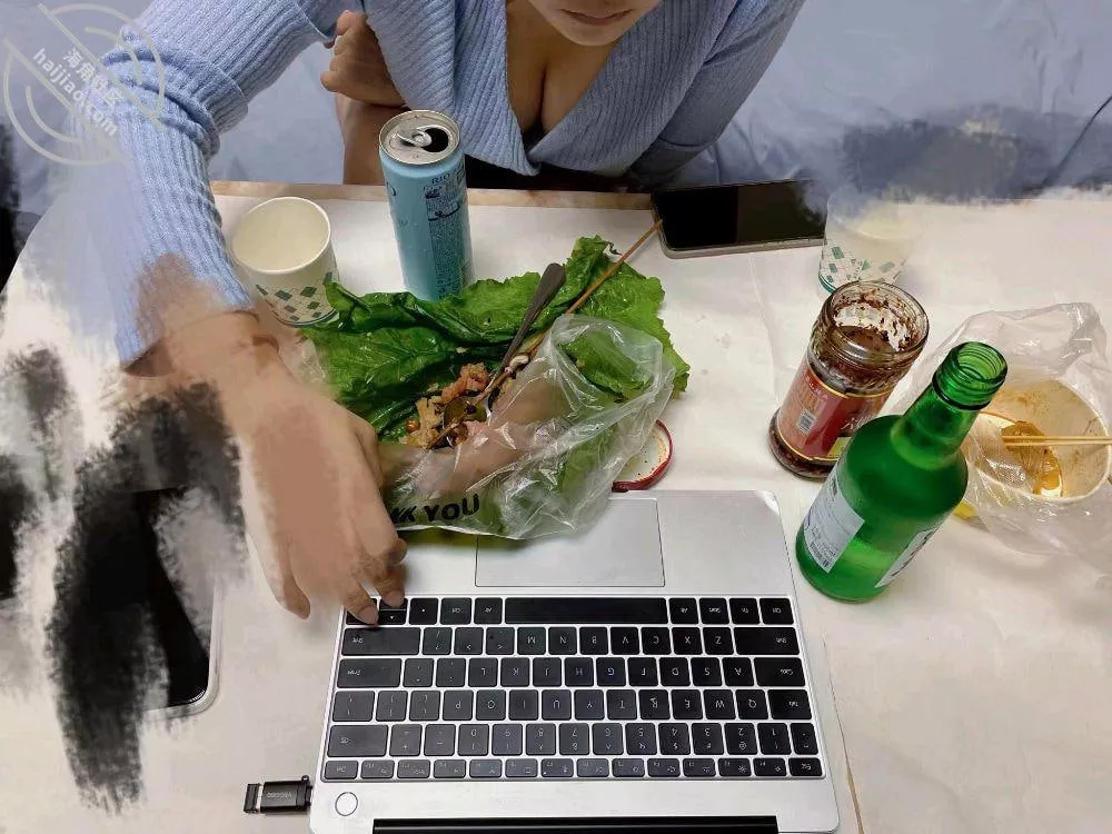今天上班都没心情了,吃个饭眼前都是表妹的大扔子,长这么大还真没见过那么大的扔子的,真是又白又嫩的。于是呢就想着要不要买几瓶气泡酒给她尝尝,酒精度虽然低,但是后劲足啊!看看会不会跟表妹发生一些故事。因为我太想念表妹的大扔子了!吃饭的时候表妹拿我电脑也不知道看的什么,偷拍的。扔子挤着看得我心神荡漾!