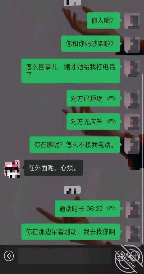也就是她妈妈给我打电话才知道她俩吵架的事情。结果就是开始跟表妹打电话他不接,打了好多次才肯接,说自己在海边的,大半夜的一个女孩子在海边能安全吗?我就让她在那别动,立马就去找她了。