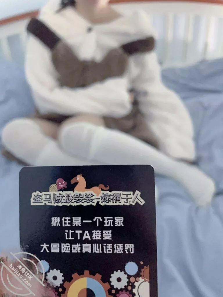 为了让彤彤转移转移注意力,我把以前买的卡牌给拿了出来,卡牌的话是正经的卡牌,就是里面会有真心话大冒险,就看看谁有这运气了,可是今天我好像又惹彤彤不开心了,没玩几把我就抽到了这个命运卡牌,我说问彤彤选择真心话还是大冒险,彤彤想了想还想选择大冒险吧!