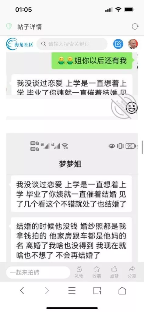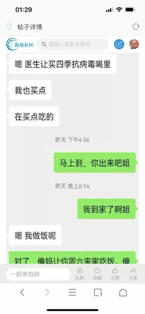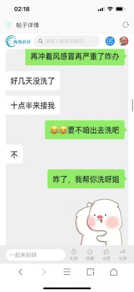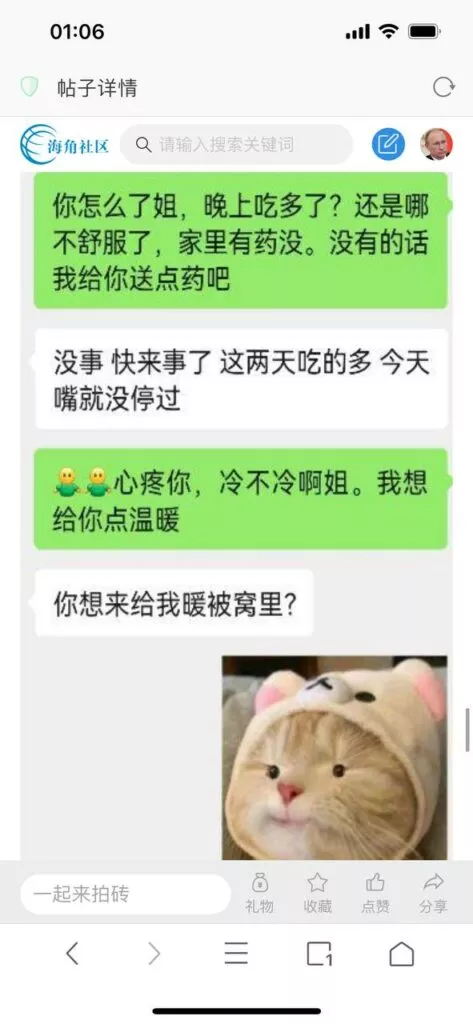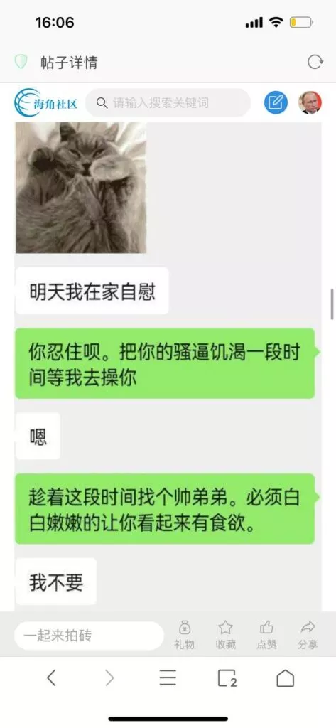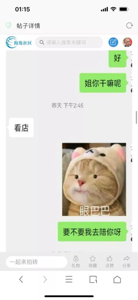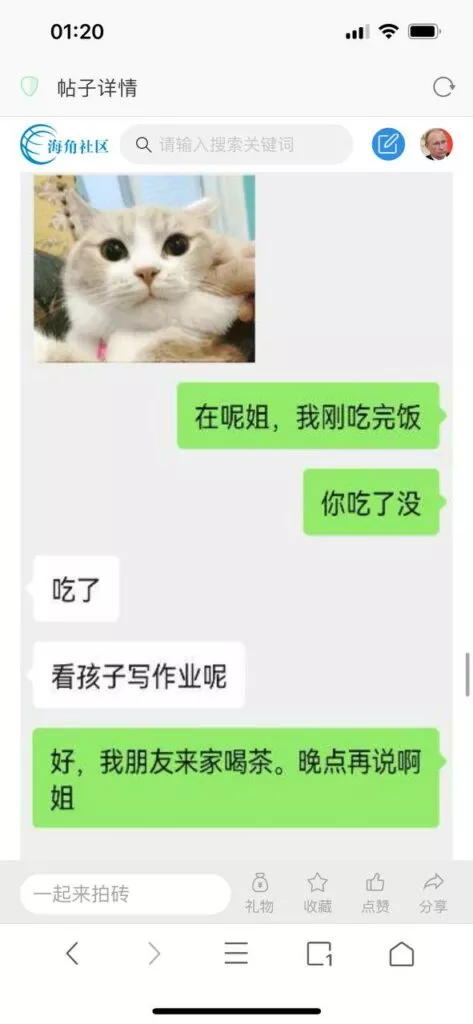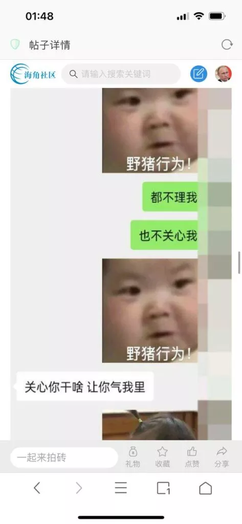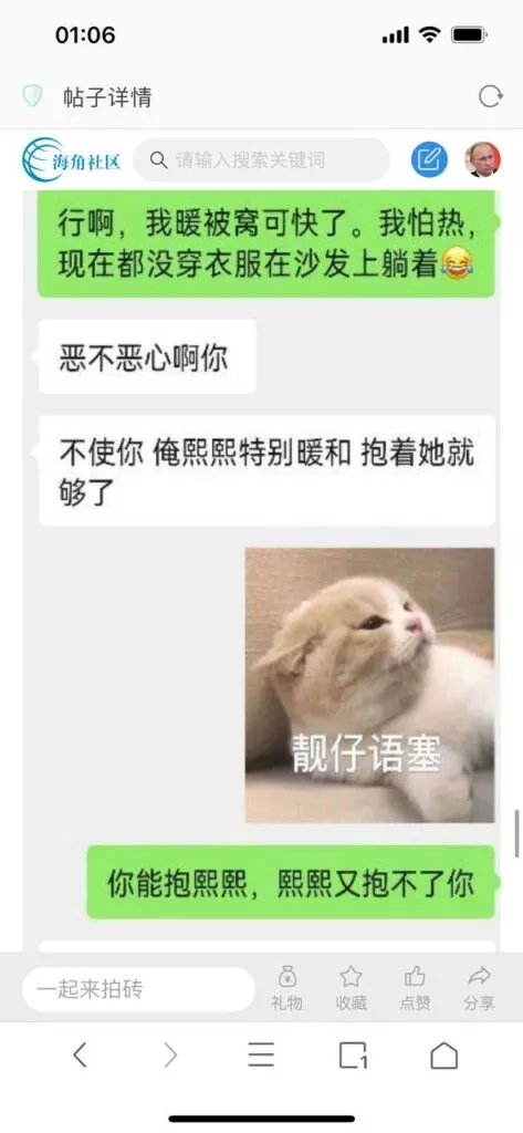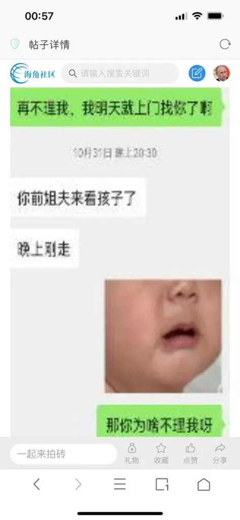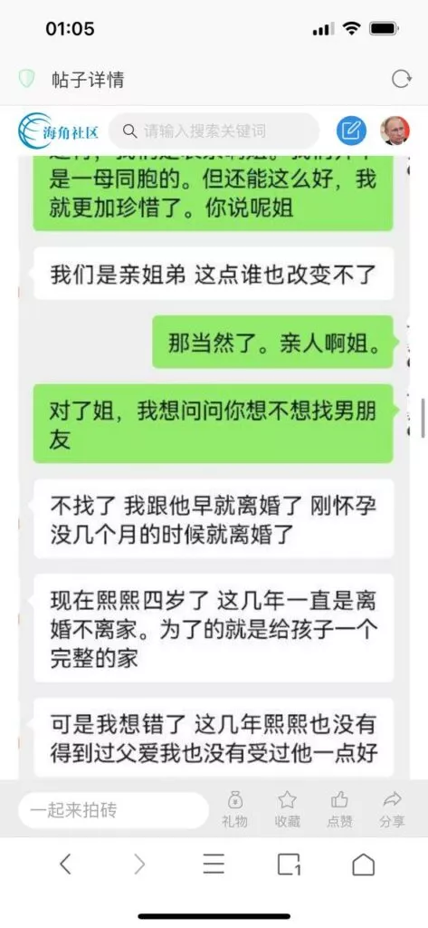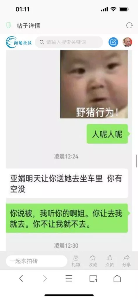 今天看电影也在犹豫要不要发一个视频。但也是我的锅,前几天晚上喝多了跟一个加我微信的海友打了微信电话,haijiaoshequ_456天南海北聊了快一个小时,脑子一热就答应了有机会再发一个帖。