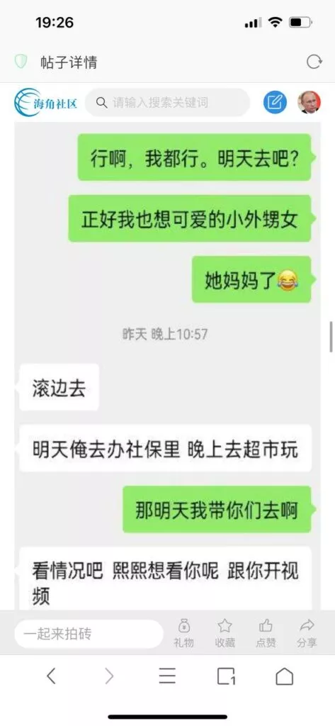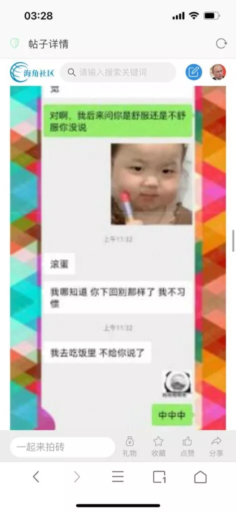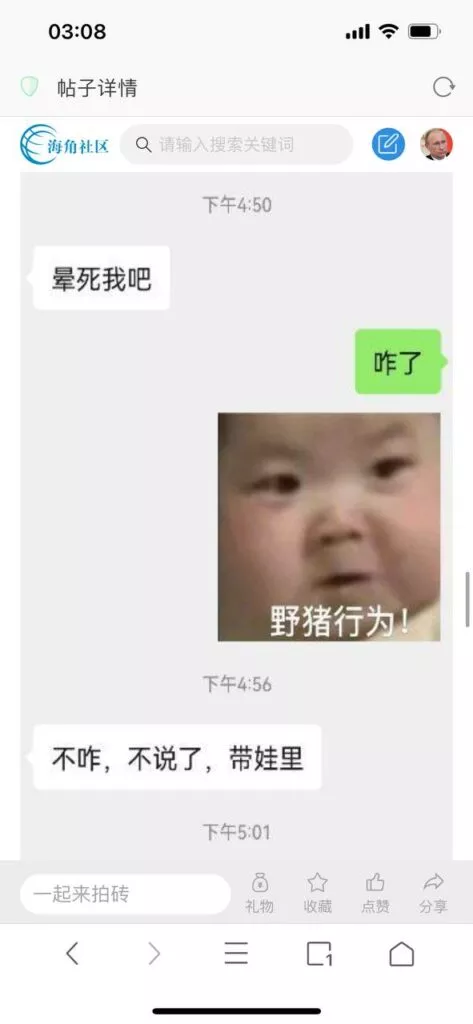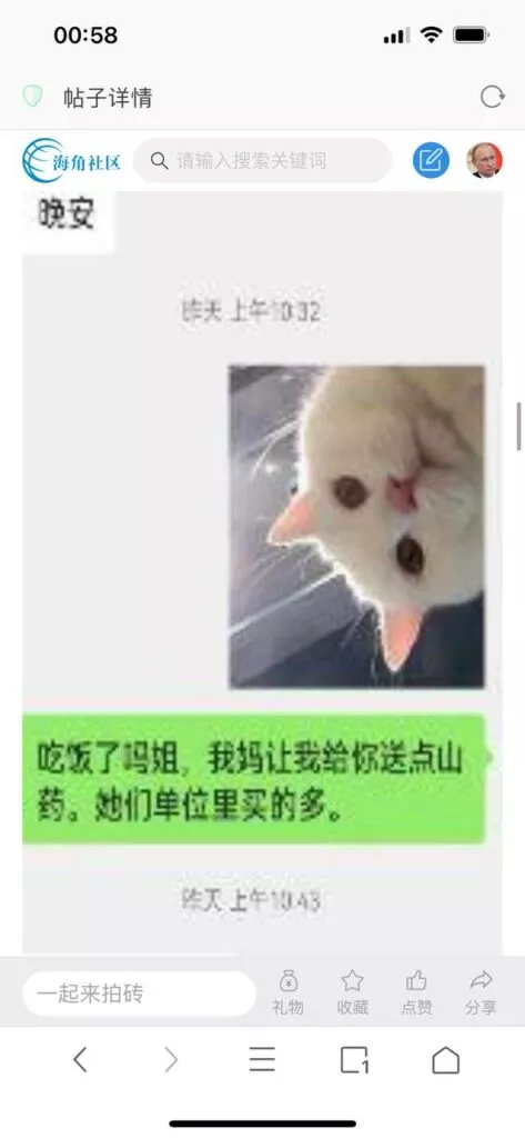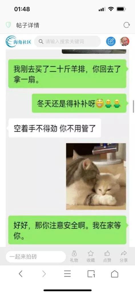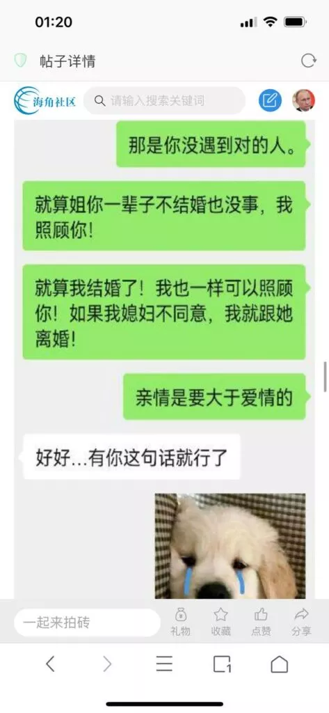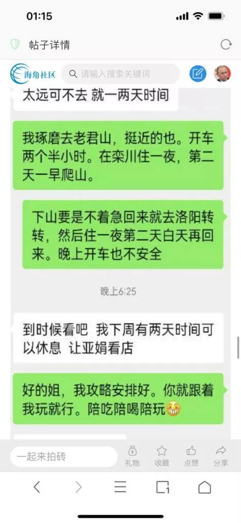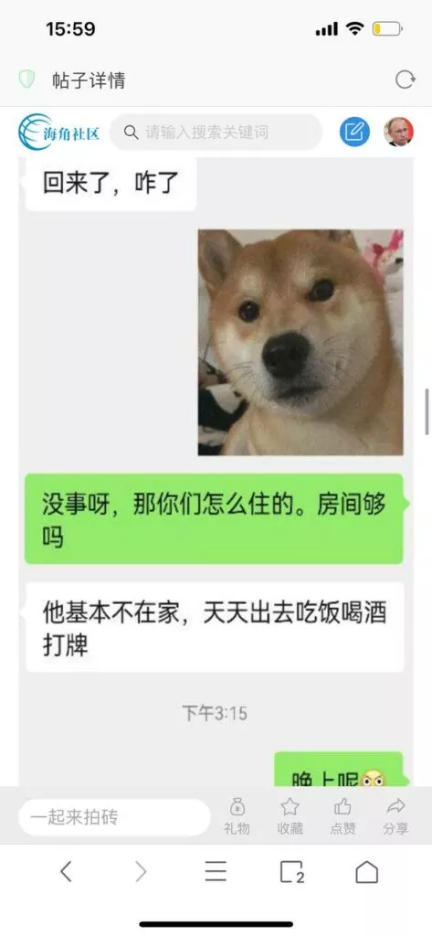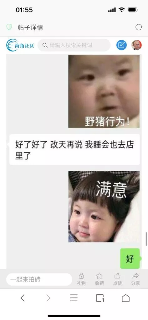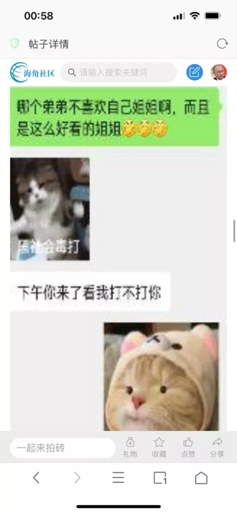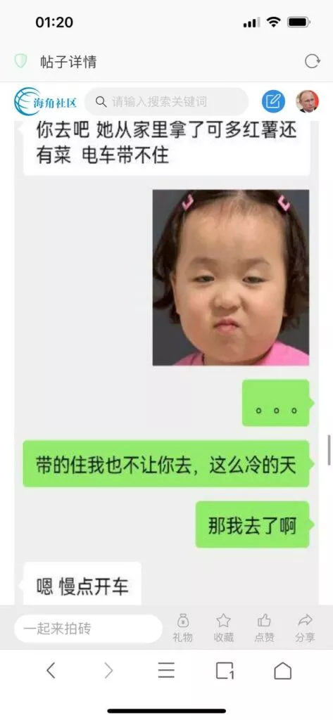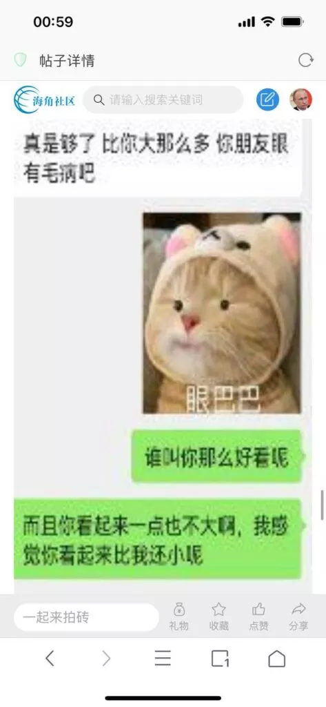 今天看电影也在犹豫要不要发一个视频。但也是我的锅,前几天晚上喝多了跟一个加我微信的海友打了微信电话,haijiaoshequ_456天南海北聊了快一个小时,脑子一热就答应了有机会再发一个帖。