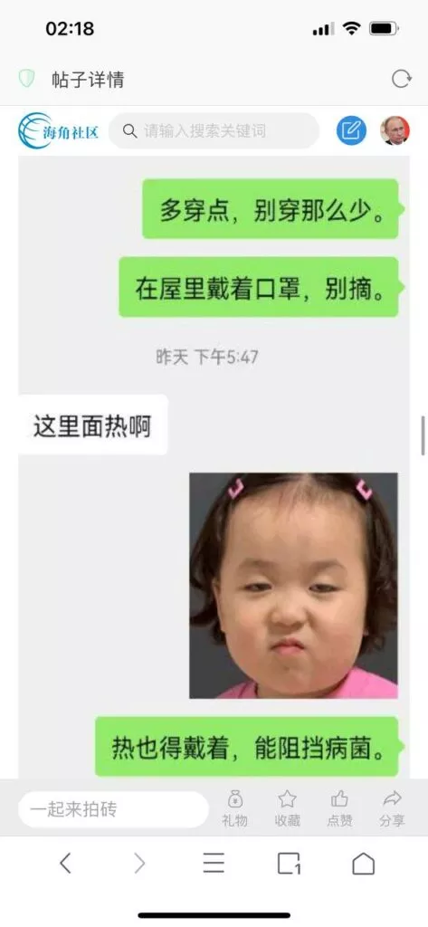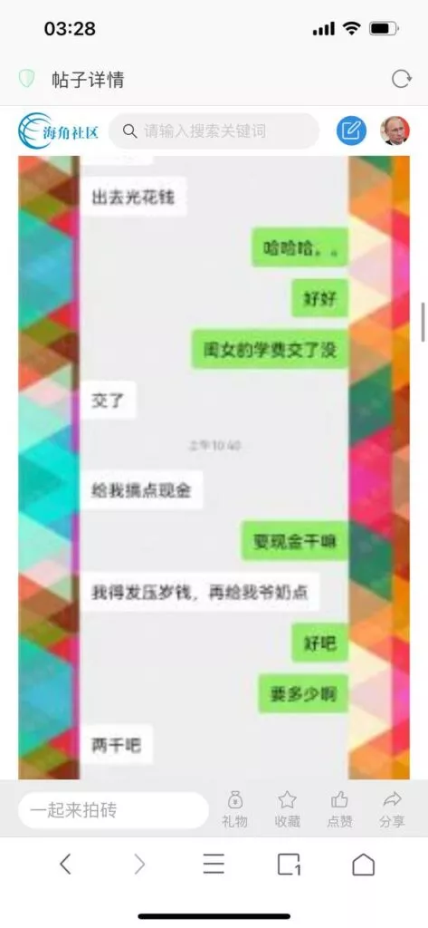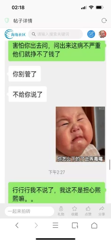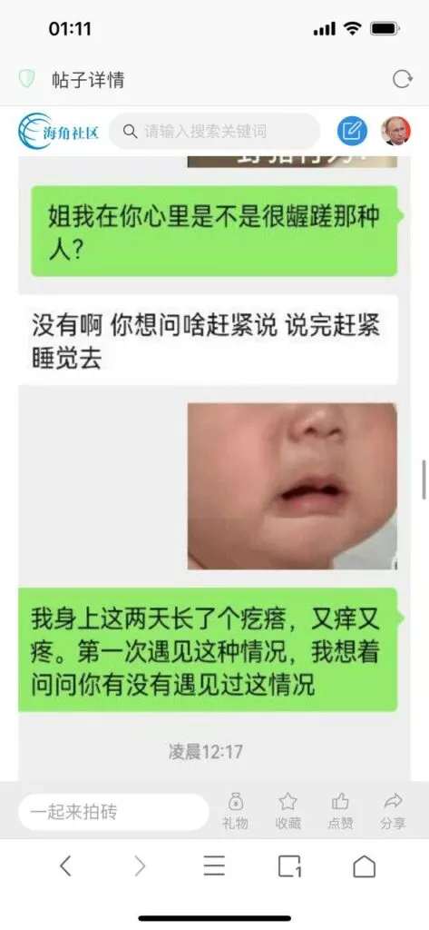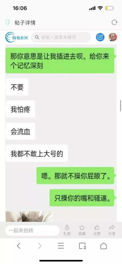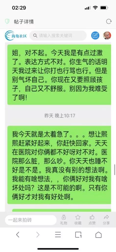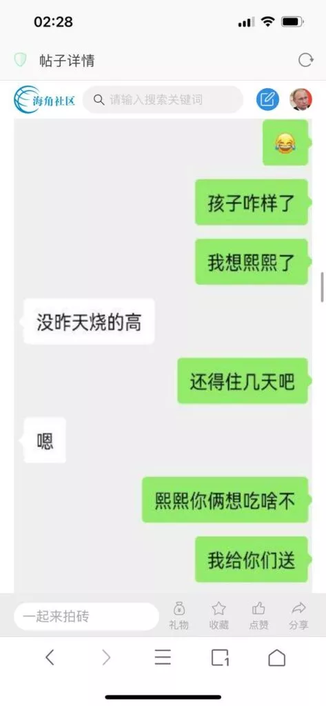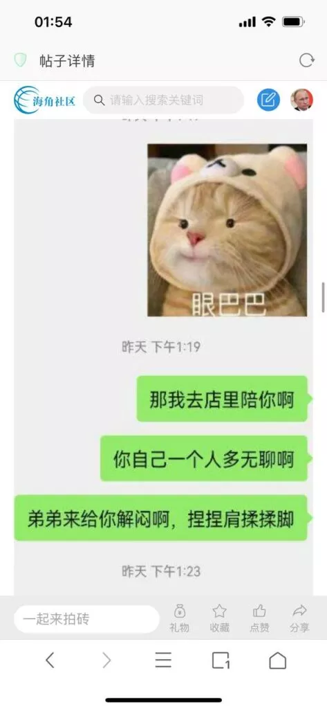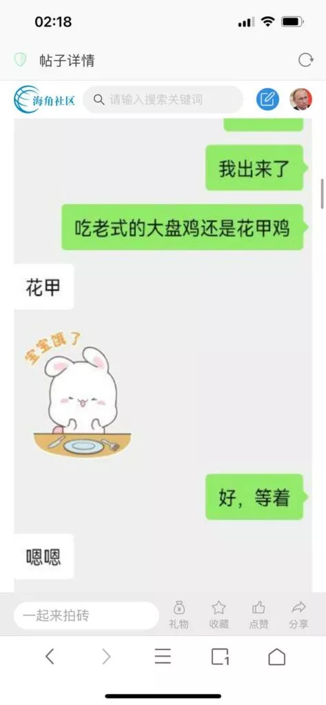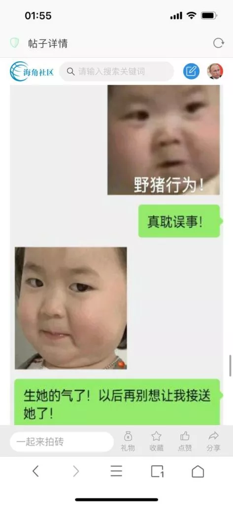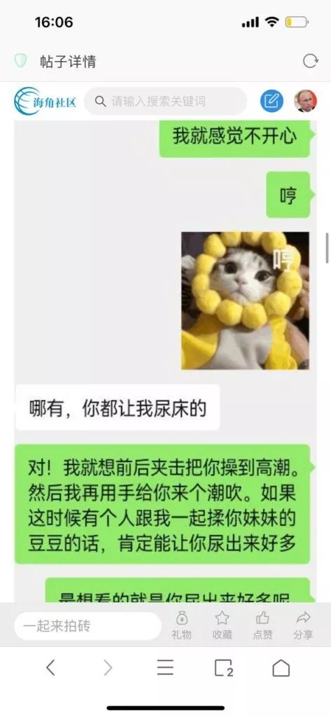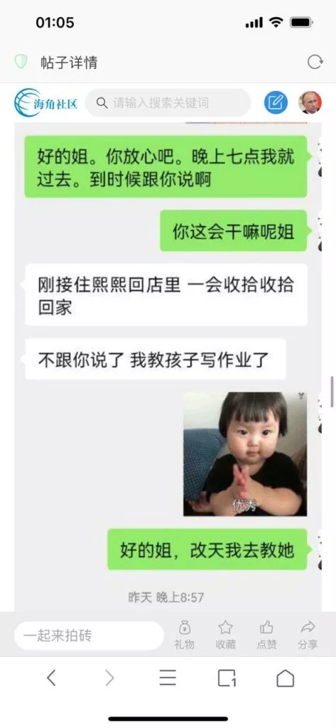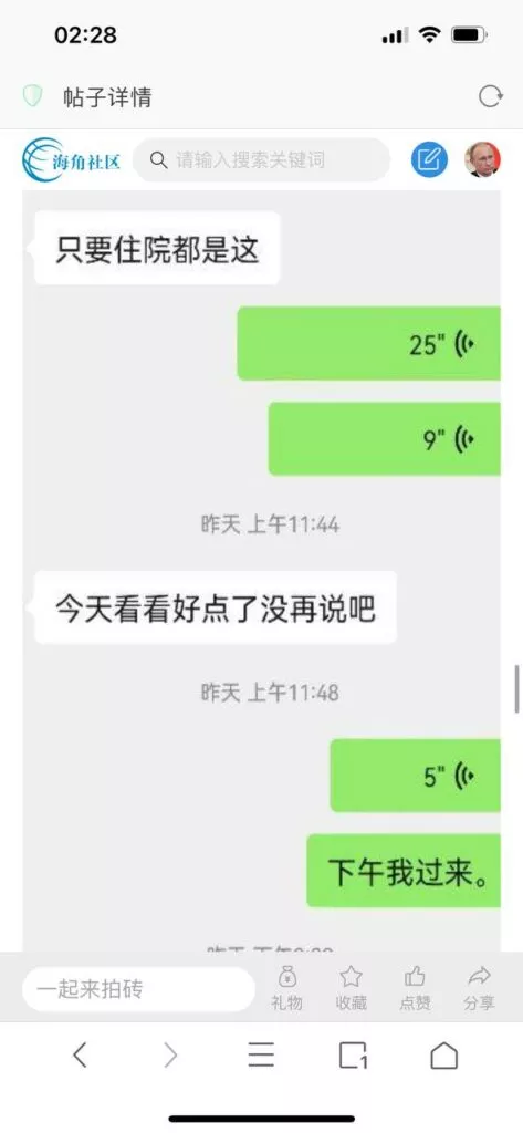 今天看电影也在犹豫要不要发一个视频。但也是我的锅,前几天晚上喝多了跟一个加我微信的海友打了微信电话,haijiaoshequ_456天南海北聊了快一个小时,脑子一热就答应了有机会再发一个帖。