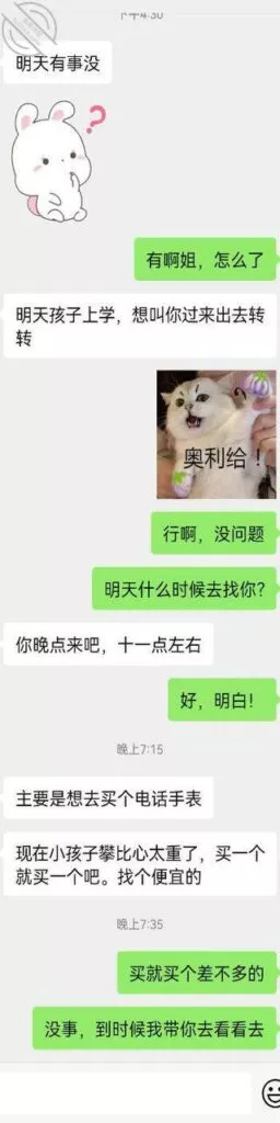 现在在跟我姐聊语音呢,今天下午她说孩子明天还上学。然后让我明天带她去买儿童手表。
