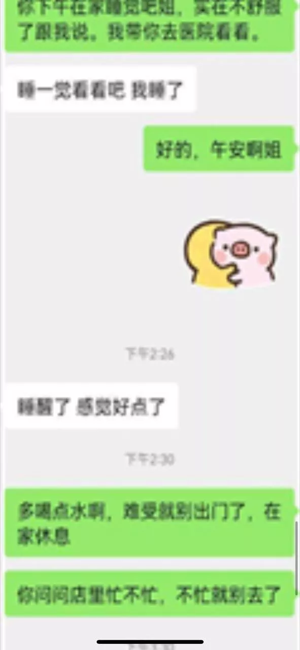 说没什么大问题,就是拉肚子,肚子疼。看完就回家了。然后让我去帮她们买点清淡到吃的晚上送过去。