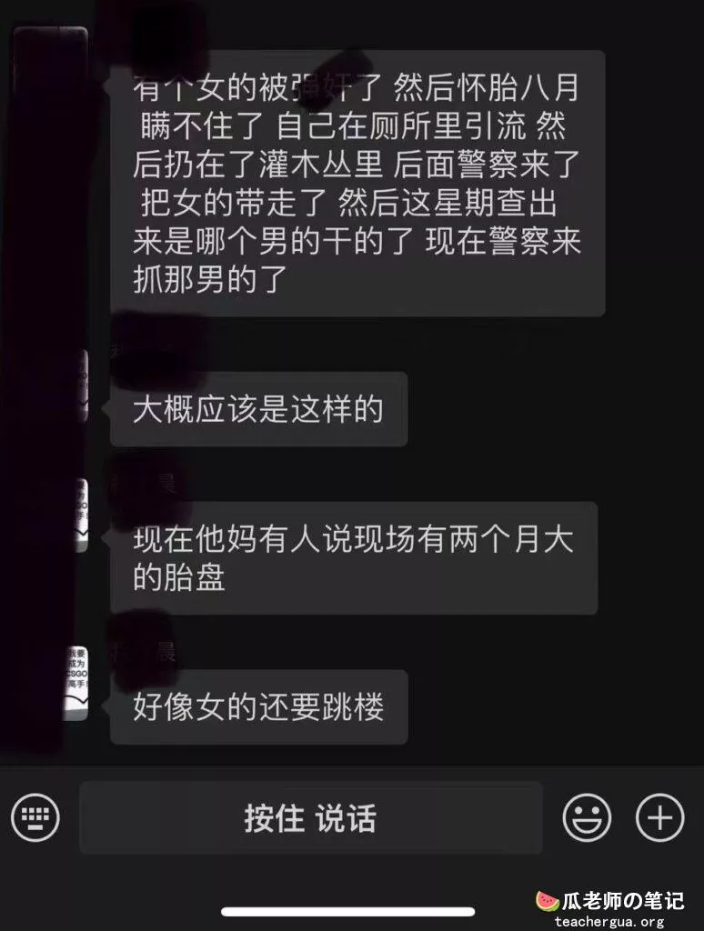 据消息来源称,女生被QJ后没有告诉周围任何人,但怀孕之后肚子越来越明显,最后实在瞒不住,选择在厕所自己引产,然后将胎儿丢弃埋在土里。