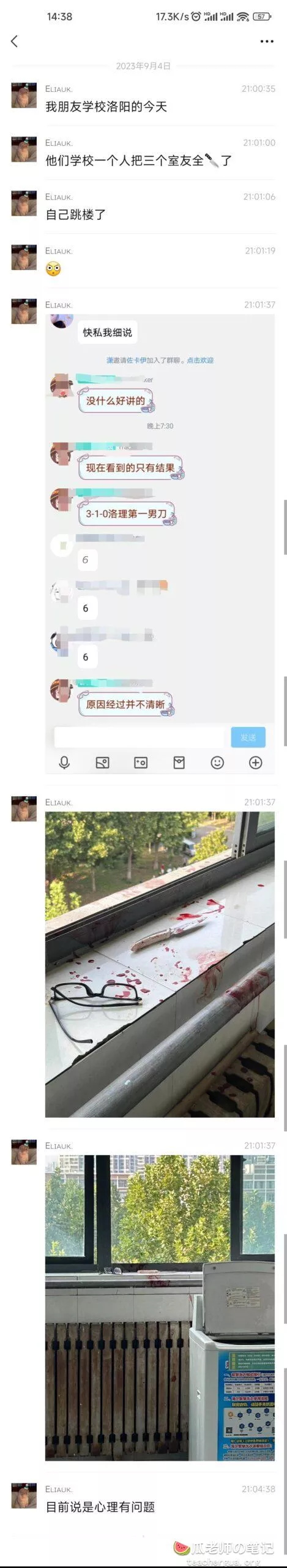 大学开学季,新生报到没多久,网传洛阳理工大学发生命案,同宿舍四人出现纠纷,其中一人刺伤另外三人后,从六楼跳下。伤着一人死亡,两人重伤。