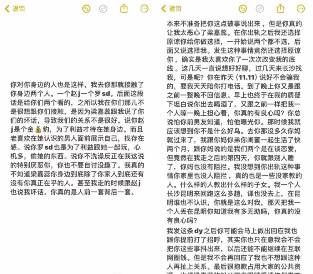 抖音百万粉丝网红【梁嘉蕊】近日被前任和现任男友共同爆料,她在与现任男友交往期间却频频寻求约会与亲密关系。一旦男友不在身边,她便立刻寻找他人。尽管因为自身的不当行为而被分手,她却仍在现任男友面前不断抨击前任。这一系列事件引发了广泛的关注与讨论。