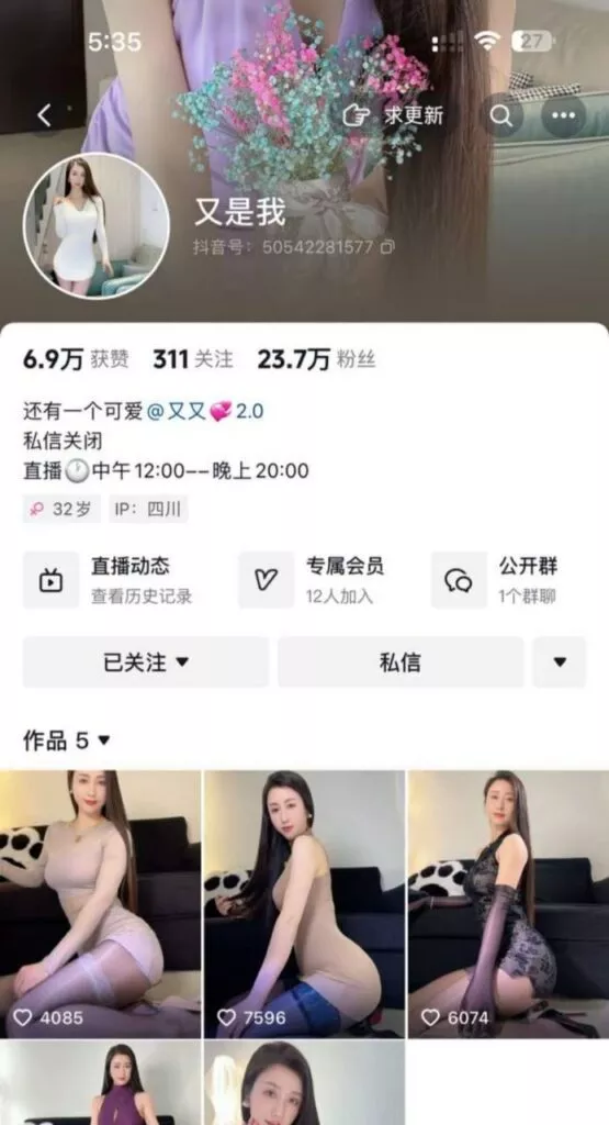 知名网红“又是我”在抖音上拥有23万粉丝,近日却曝出一段线下一对一的果聊视频。视频中,这位绝美的少妇身着情趣旗袍,配以肉丝高跟鞋,完美展现出令人惊艳的性感姿态。