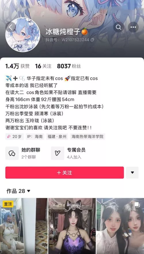 抖音二次元coser校园网红冰糖炖橙子私拍大尺度福利视频流出