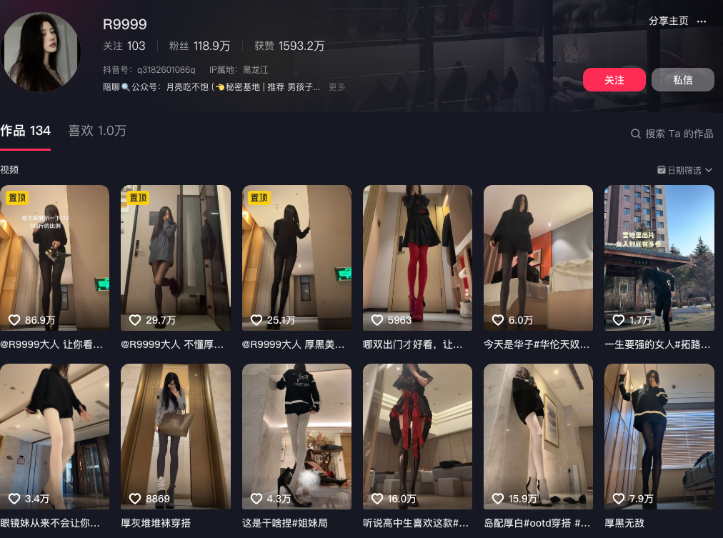 抖音上拥有120万粉丝的颜值博主R9999,凭借一双修长美腿吸引了众多关注,每天分享各种时尚美照,展现她的迷人风采。然而,在私下里,她的反差人格让人惊讶,近日更是流出了一段大尺度自愉私拍的视频。