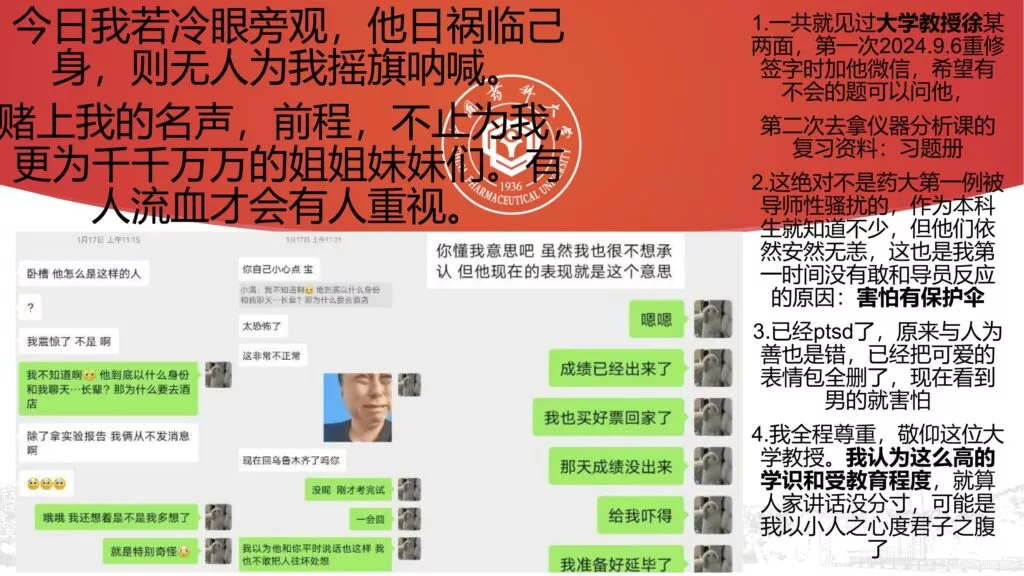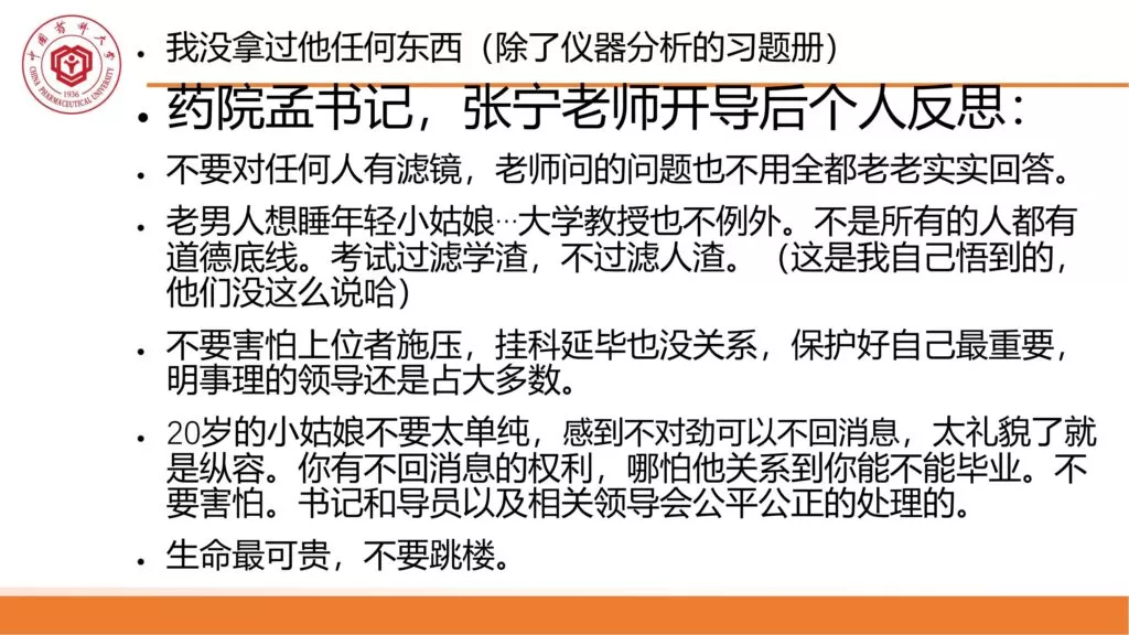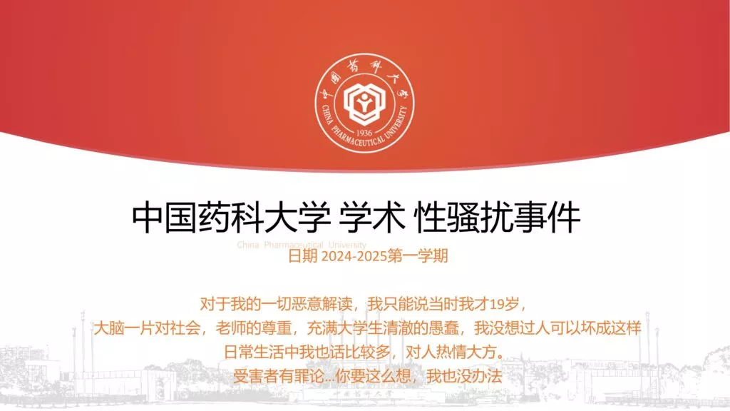 37页PPT曝光中国药科大学性搔扰事件!畜生药科大学导师猥亵研究生