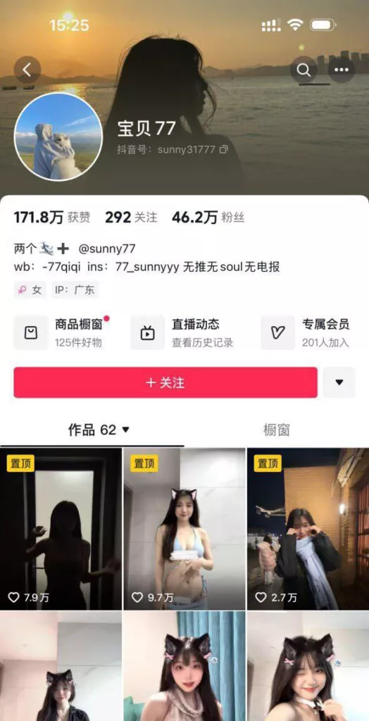 在墙内社交媒体上,一些创作者发布了边缘视频,以营造出清纯的人设;与此同时,在墙外的成人网站上,则有人大胆尝试私拍大尺度福利内容。目前,已有46万粉丝关注的抖音边缘网红“宝贝77”发布了最新的私拍福利视频,引发了广泛关注。