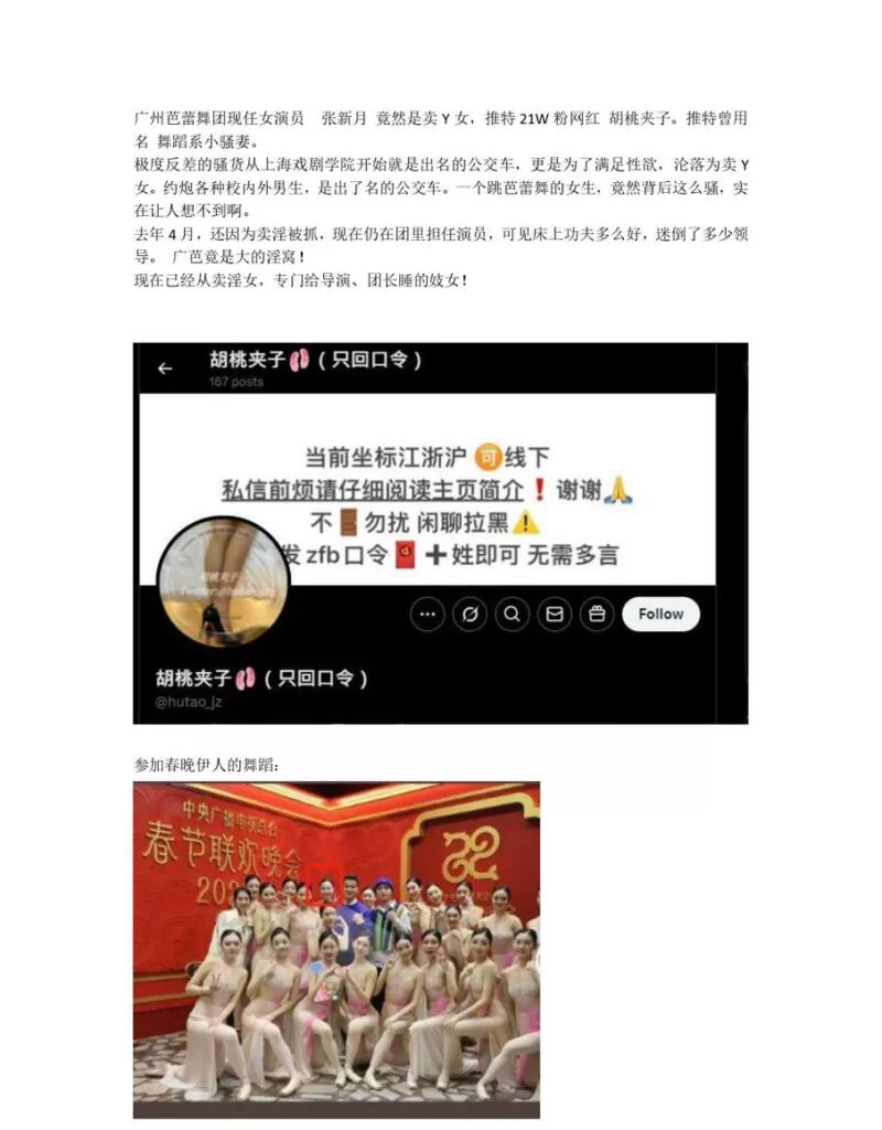 广州芭蕾舞团女演员张新月惊爆卖银丑闻,从上海戏剧学院毕业的高等生,无论身材还是颜值,亦或者舞蹈水平,全都在线的佼佼者,私底下竟然是一名福利姬,21W推特网红胡桃夹子的双面人生