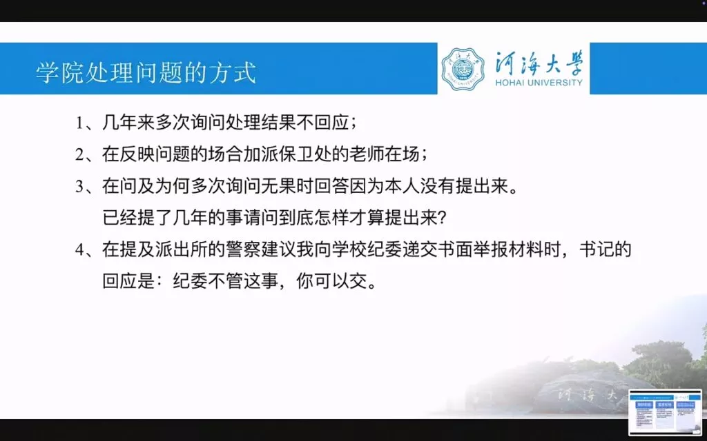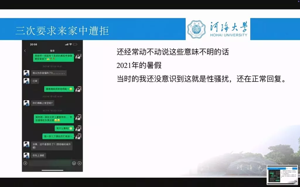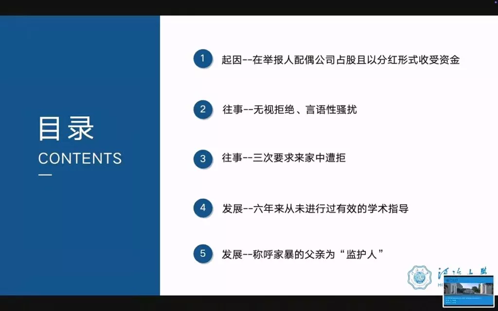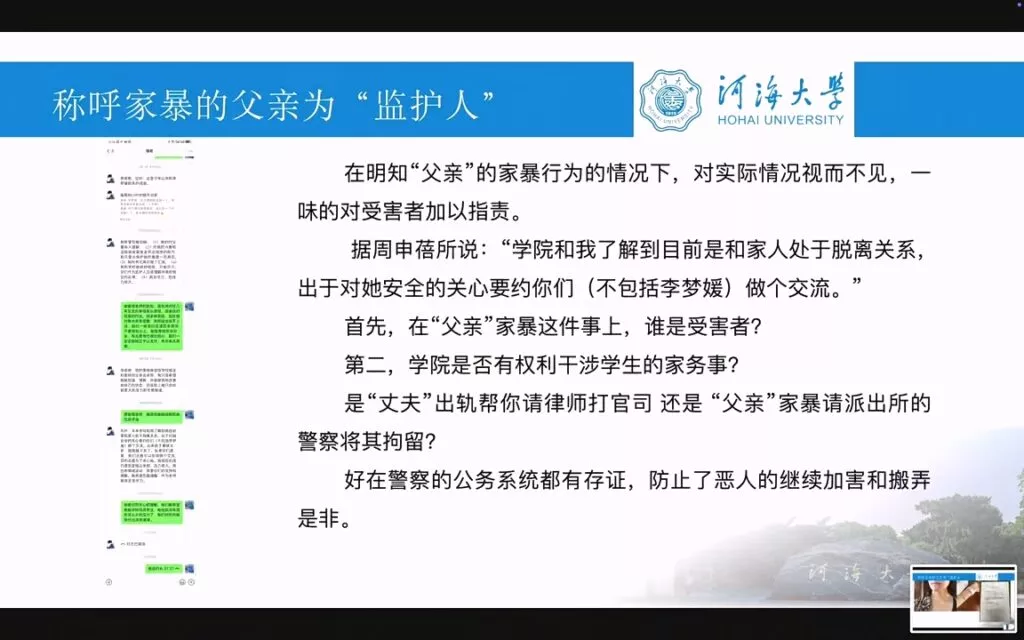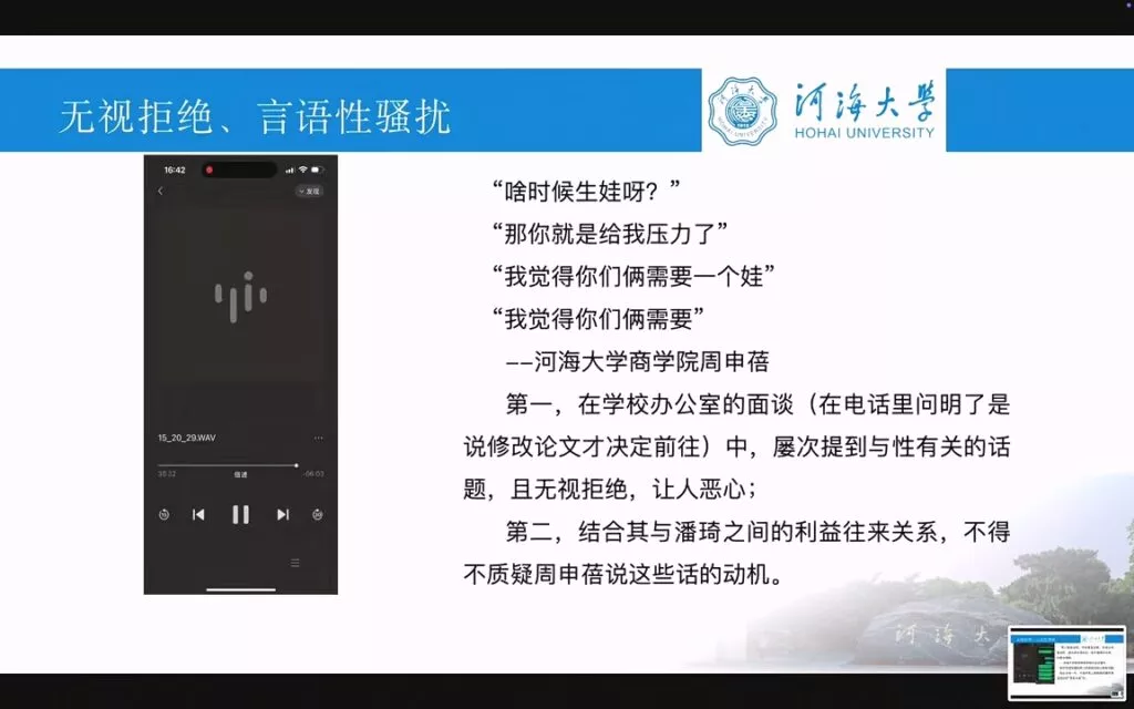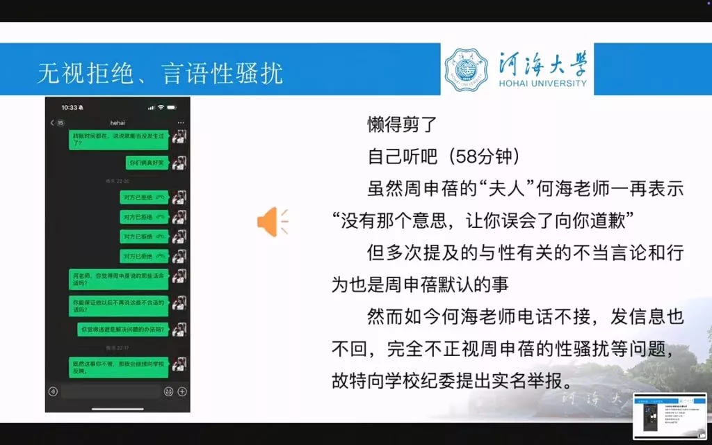 河海大学引发关注,女博士李梦媛揭露导师周申蓓的不当行为。李梦媛举报指出周申蓓与她配偶有不当关系,知晓李梦媛已婚却多次言语搔扰她。周申蓓还试图趁她丈夫不在时上门提供“学术指导”,遭拒后态度恶劣。