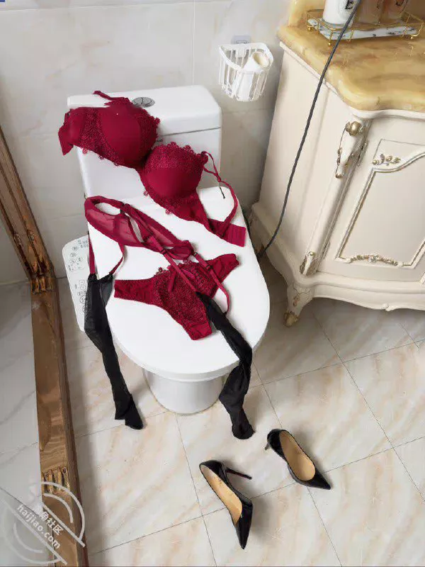 她洗完澡出来就直接扑倒在沙发上玩手机,她一动,睡衣被扯起来,半个屁股都露出来了,我看的眼睛都直了,正想着找个理由转到另一边去好好看看她的屁股,她突然叫我去卫生间把她的衣服扔到洗衣机里面。我当时以为被她发现了我在看她的屁股所以故意支开我,只好悻悻地离开了。我原本以为是衣服裤子啥的,到了卫生间一看,她说的衣服居然是她的内衣!红色的内裤,红色的扔罩还有黑色的吊带袜。我的下体瞬间勃起,心中动了拿她的内裤打飞机的念头。
