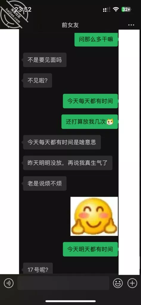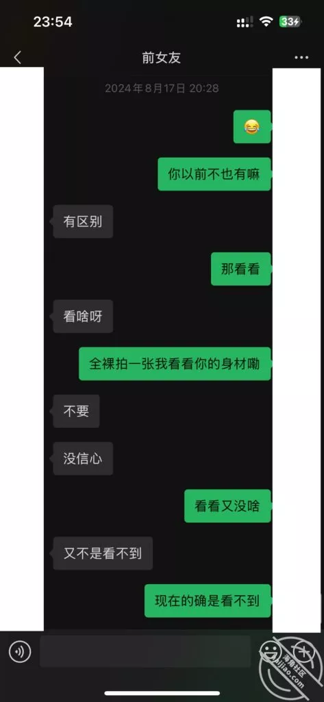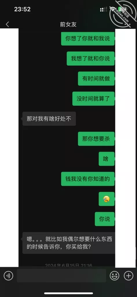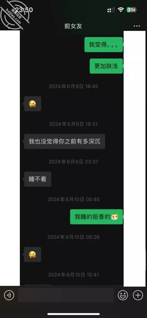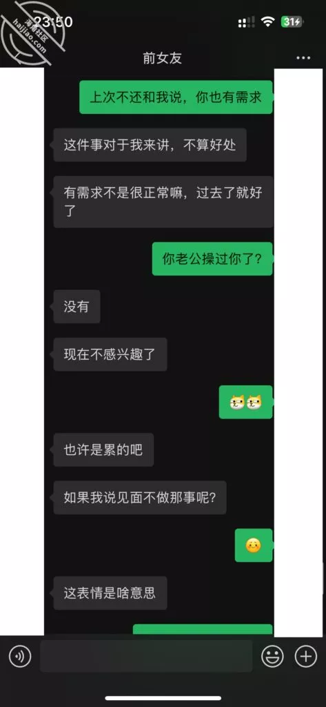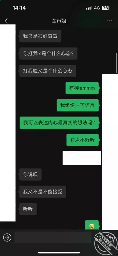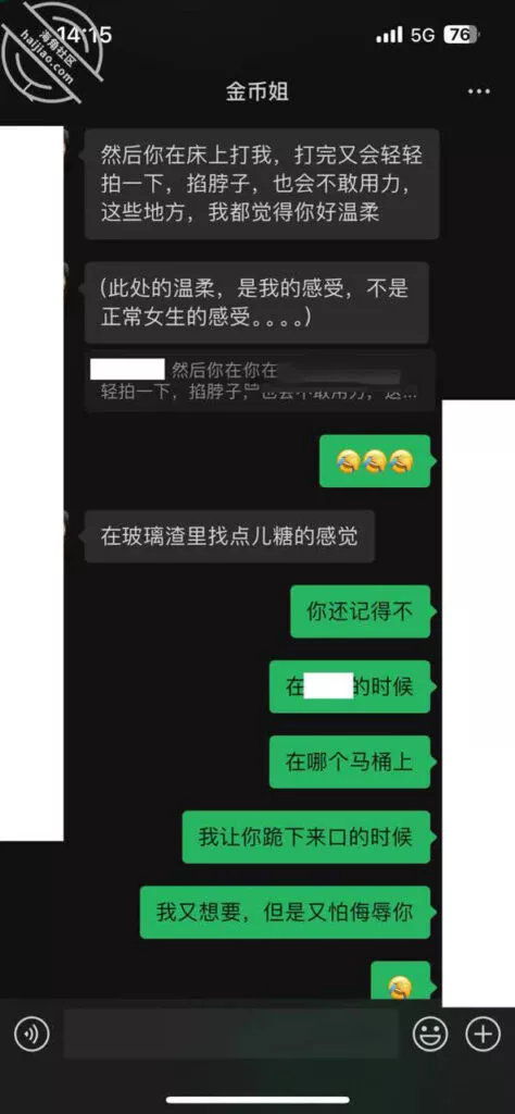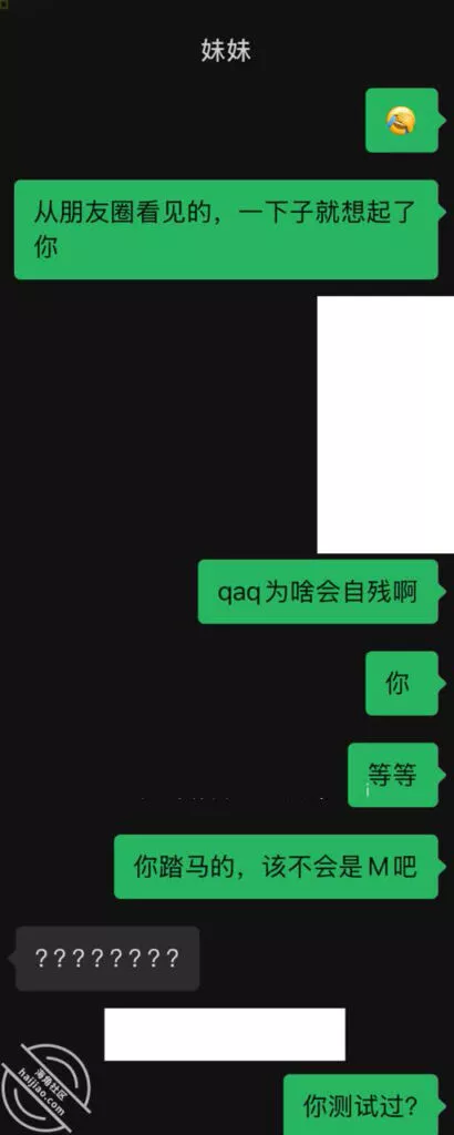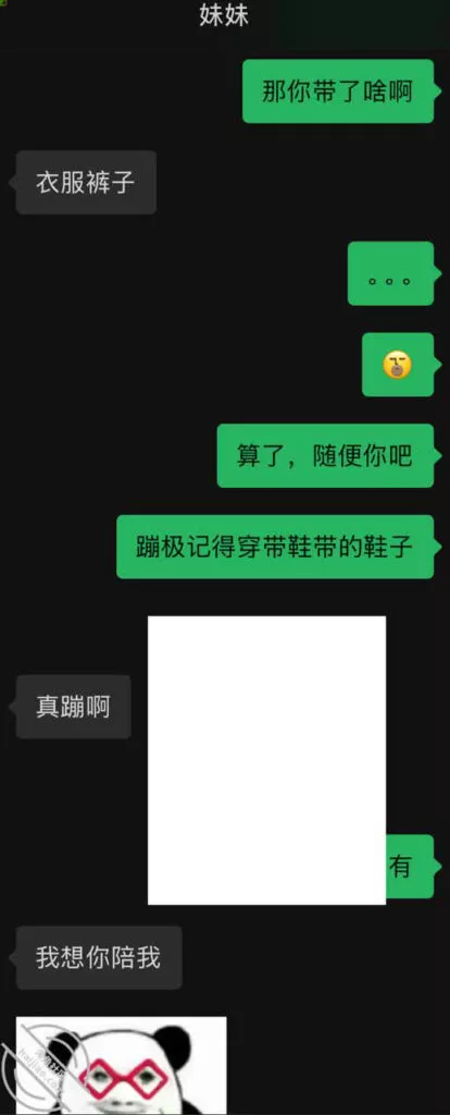 不得不说,如果女生反差起来,真的很可怕!之前和她出去玩的时候聊天,我就知道她有点M的倾向。和绿泡泡她聊天的时候,我经常发些训练的表情包,她竟然表示喜欢