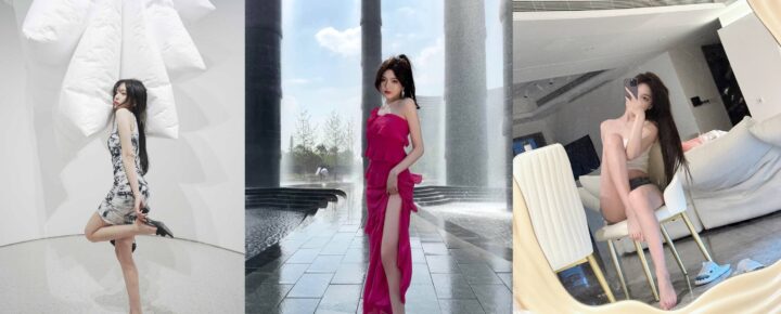照片中的她,或是慵懒地倚靠在椅背,或是低头浅笑,眼神中透露出不可抗拒的诱惑力。甜美中又增添几分小恶魔般的妩媚气息,让人沉醉其中。在这款惊艳一袭金色礼裙的外表下,是一位俏皮迷人的猫系女孩。