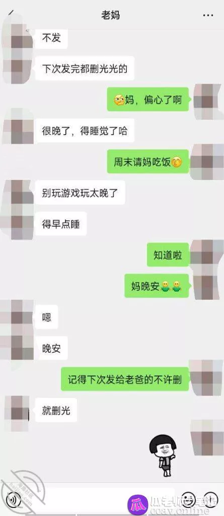 昨晚老妈给我打电话叫我回家睡,老弟心里激动了一下,躺床上的时候本来想和妈妈谈谈的,但是又不知道怎么开口,后面实在没忍住,就问了句,妈,你还生气吗?被瞪了一眼,然后老妈说没生气