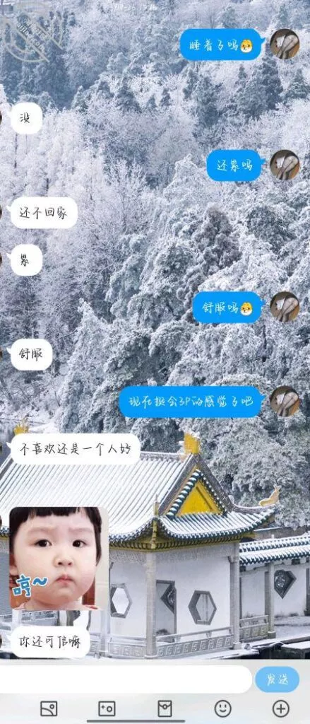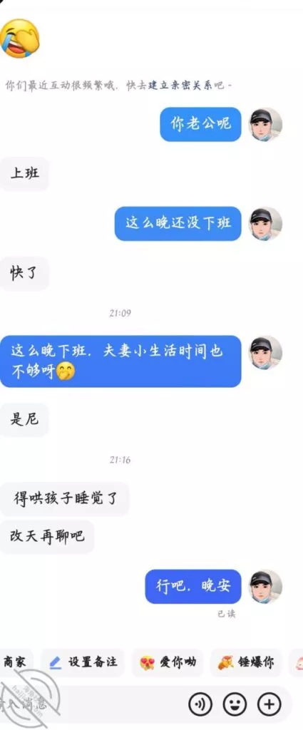 下期视频我会带上认证从我家到她家一镜到底,第三个问题有的兄弟说进展太快,这个有我一方面原因,我每天都和她聊天,进展没有及时更新,主要是工作忙,年前了事情太多,还想着年前多挣些钱。还有就是有的兄弟提议改个名字,今天把名字改了头像也换了。