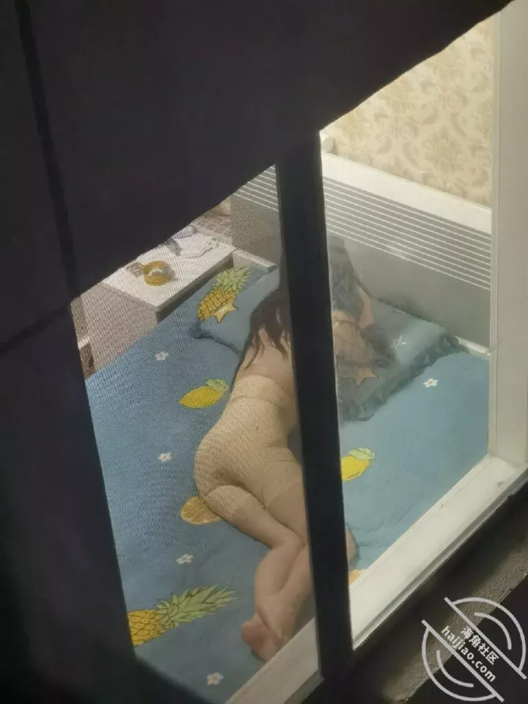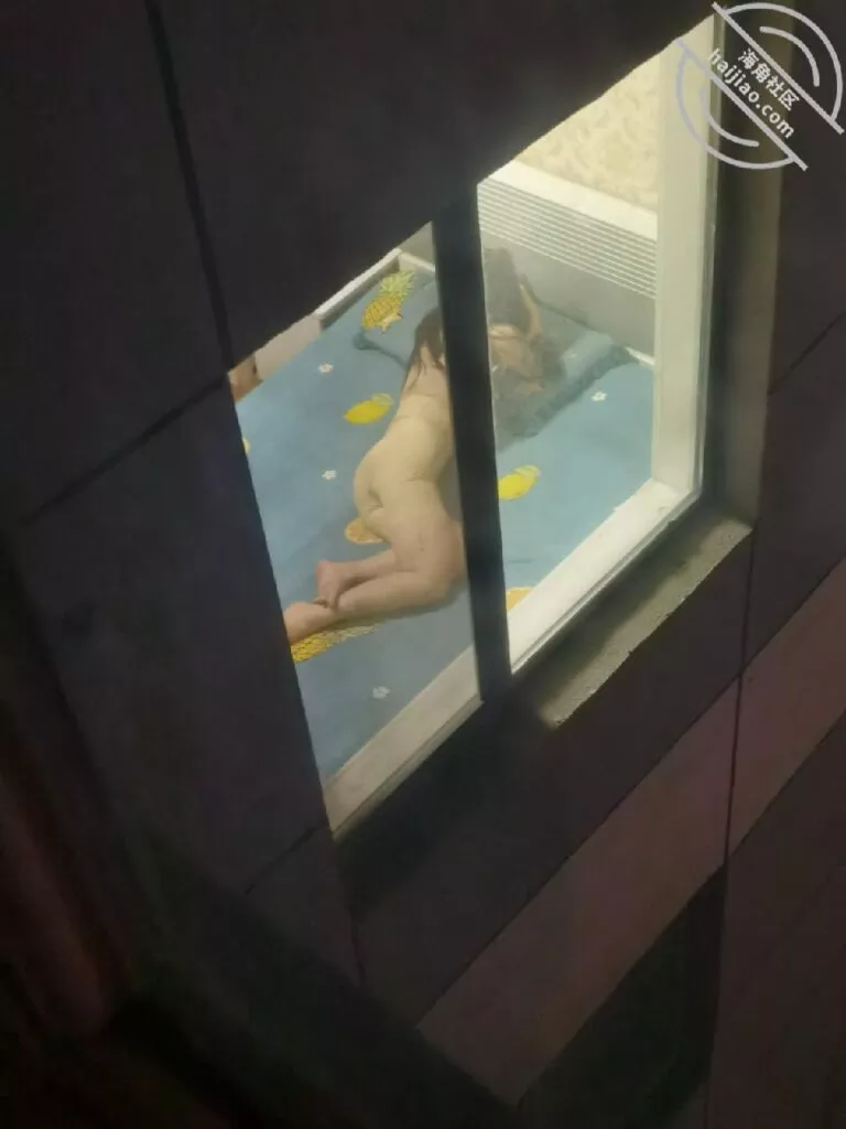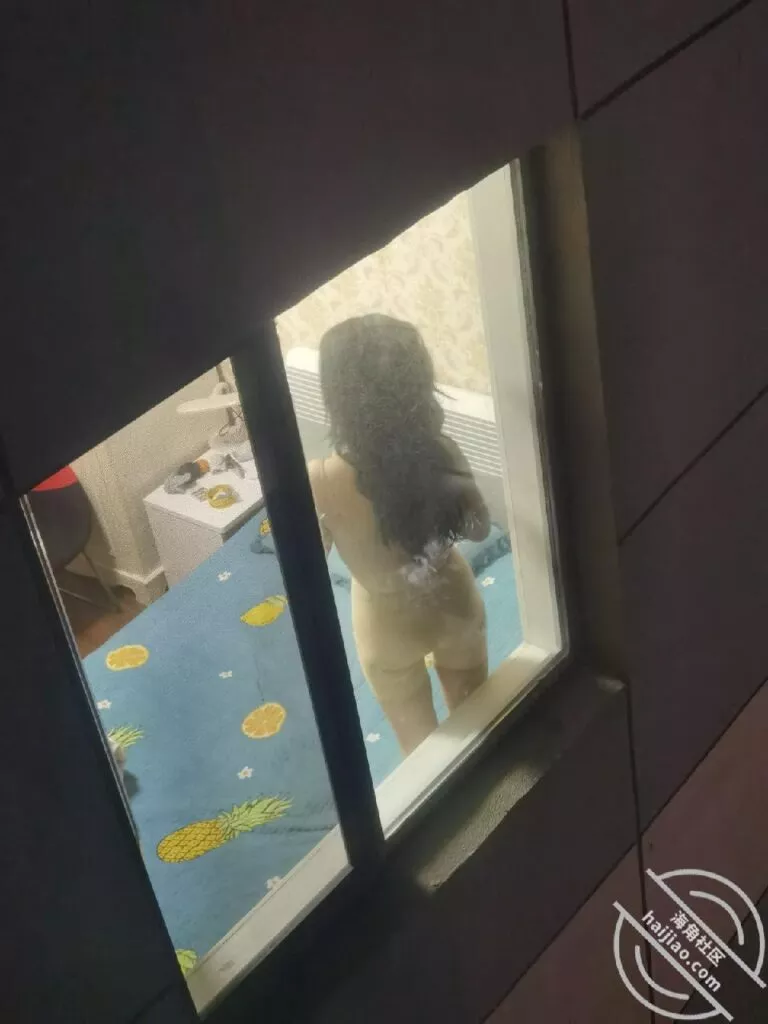 在一楼窗户边上拍照,闪光灯没关,差点被发现,还好窗户比较高,看不到她的搔屁股