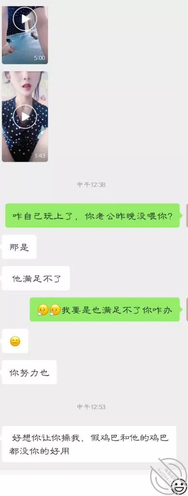 今天正上着班呢,邻居发来一个视频,一个在楼道里自愉的视频,他妈的还是在我家门口,这娘们胆子越来越大了,我都不敢在她家Cao她,你胆子大的跑我家门口自愉,之前她家里没人的时候叫我去她家好几次,去的时候兴致勃勃,要做的时候瞬间垂头丧气,不是小弟不行,我真怕被堵家里面,会死人的。