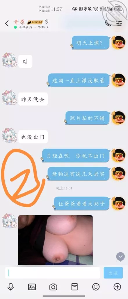 巨扔表妹大扔子依然诱人,国庆就没Cao上他的搔b,约到后天周日Cao她,刚才聊天让母狗大发扔子图,让他自己舔自己扔子,那么大的扔子,他竟然够不着舔🙃。