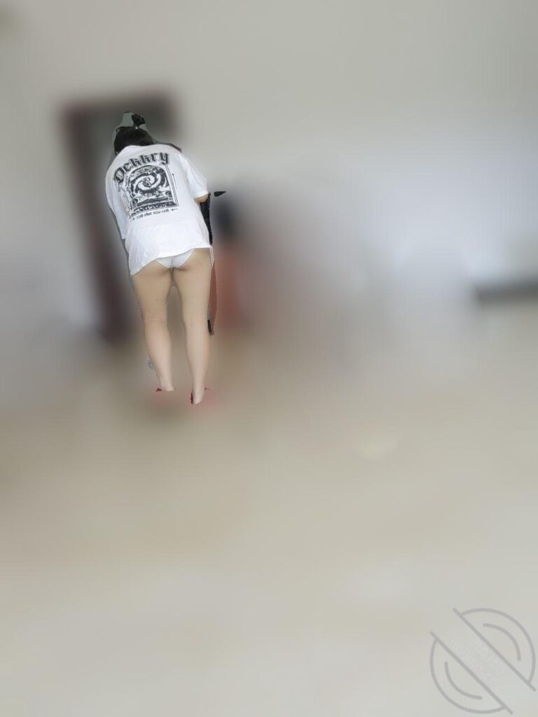 今天休息没有去上班,不知道老妹是故意的还是忘记我今天休息了!大白天的穿着小内裤就开始拖地,一弯腰拖地内裤全看见了,是不是老妹对我不太见外了哦!哈哈哈!