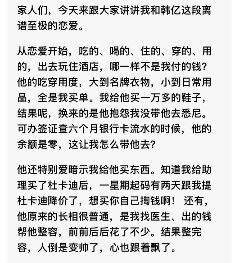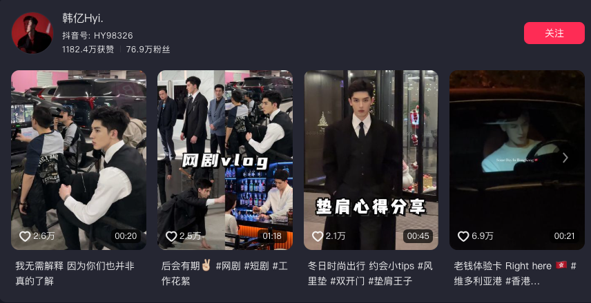 事件男主角韩亿在抖音仅仅只有70万粉丝,对比女友的千万粉丝体量,这难不成是软饭硬吃?