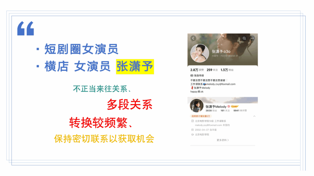 49页PPT揭露短剧女演员张潇予时间管理大师与多人保持暧昧关系